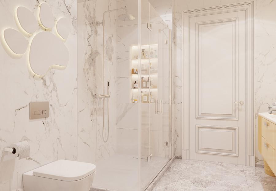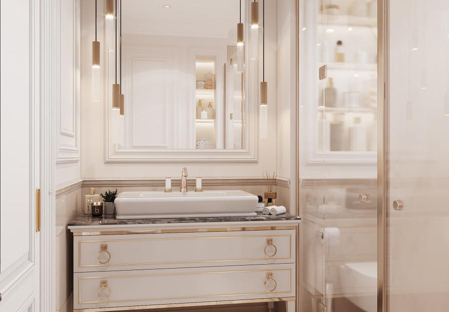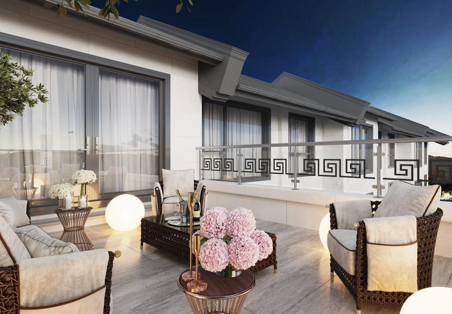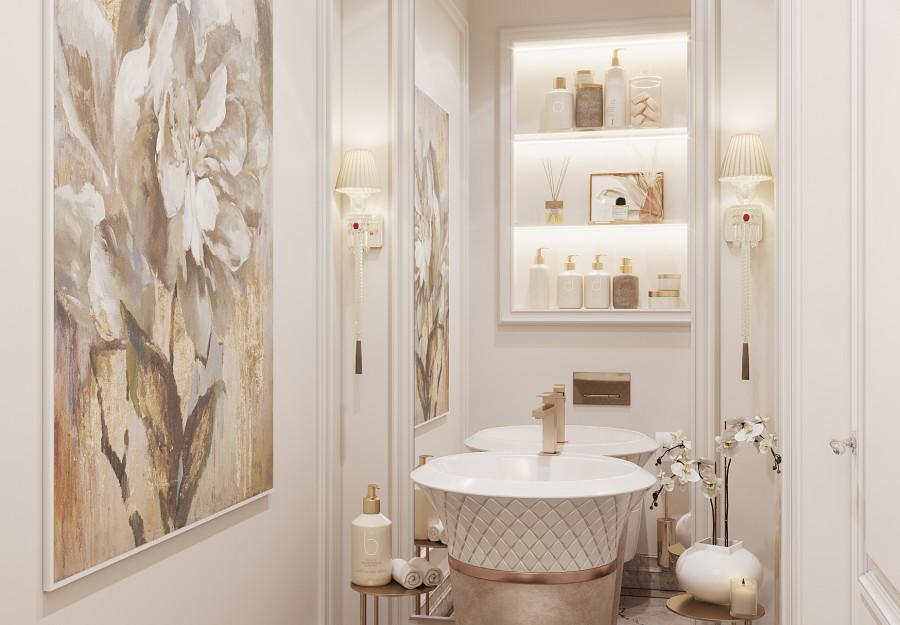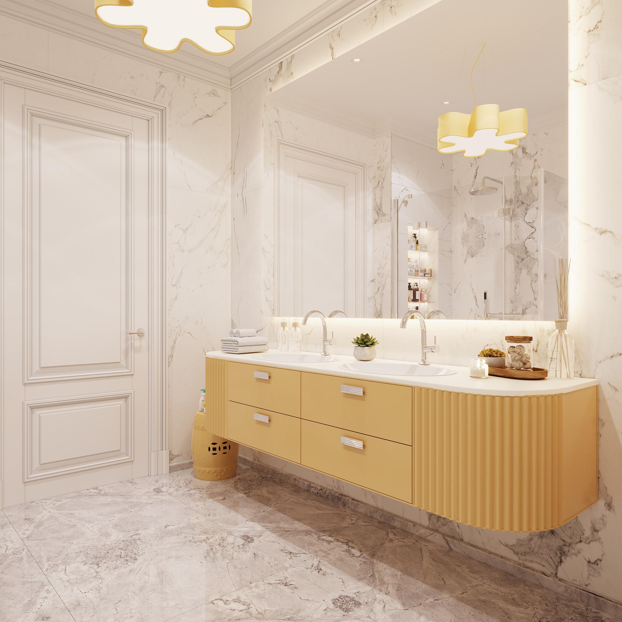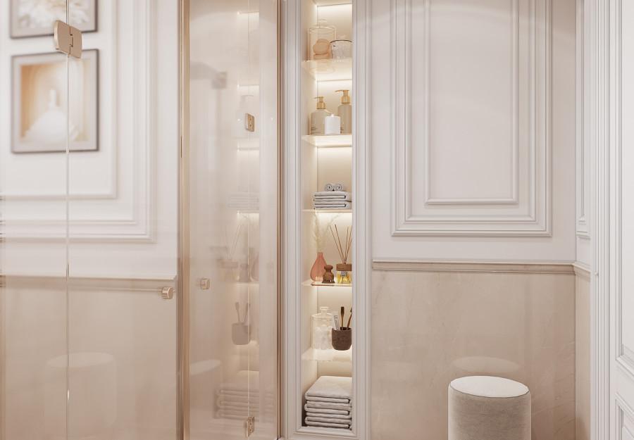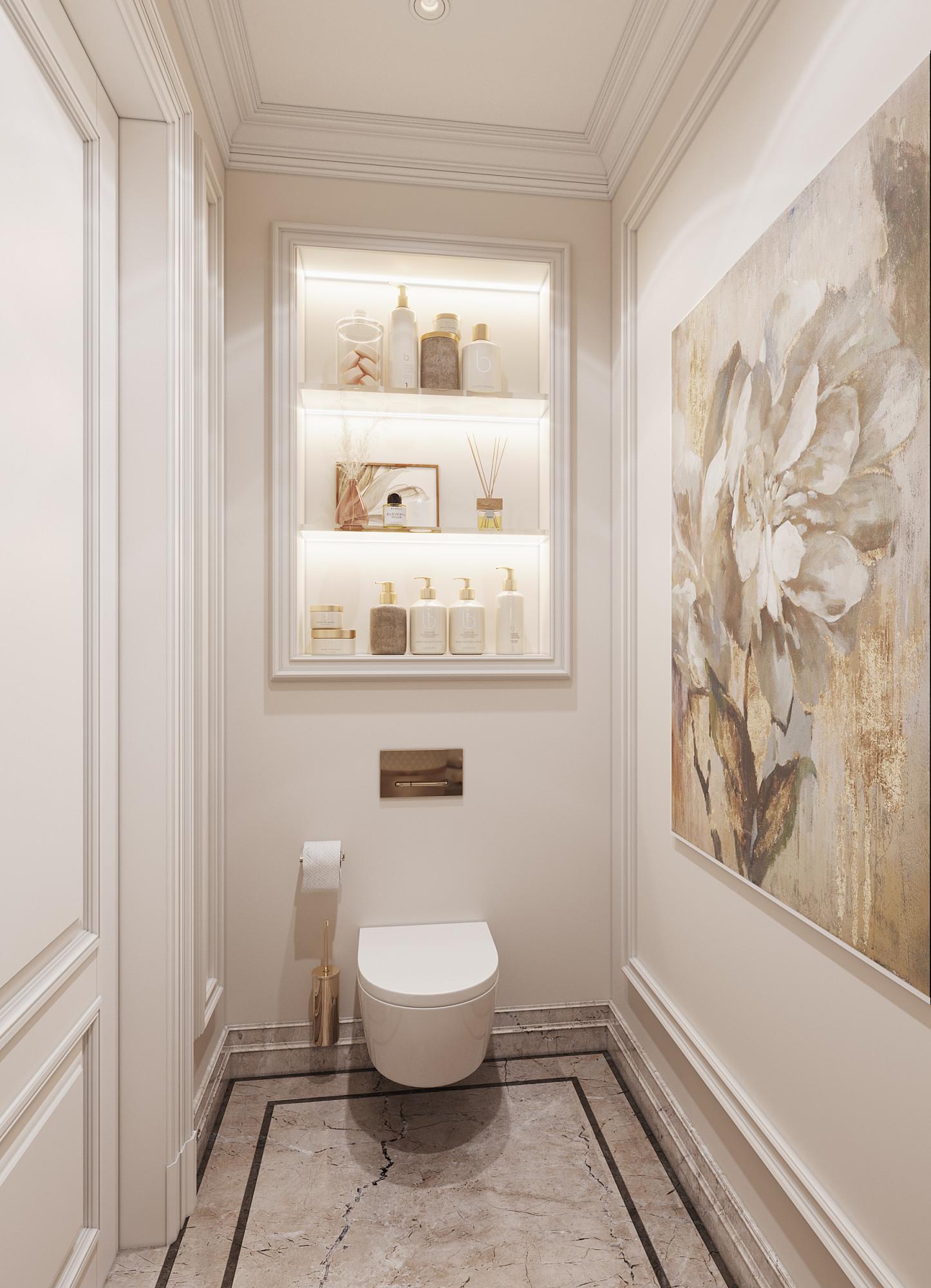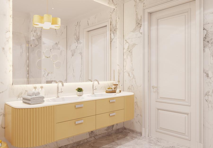 Интерьер дома выполнен в стиле неоклассика, что видно по изысканным деталям и нейтральной цветовой гамме. Основные материалы включают мрамор, который используется для отделки стен и пола, создавая ощущение роскоши и элегантности. Мебель в светлых тонах с удобной посадкой обеспечивает комфорт, а декоративные подушки и текстиль добавляют уюта. Освещение в комнатах продумано до мелочей: настенные бра, люстры и торшеры сделали пространство еще более эффектным. Интерьер привлекает балансом между красотой и практичностью, а также способностью создавать атмосферу роскоши и уюта одновременно.