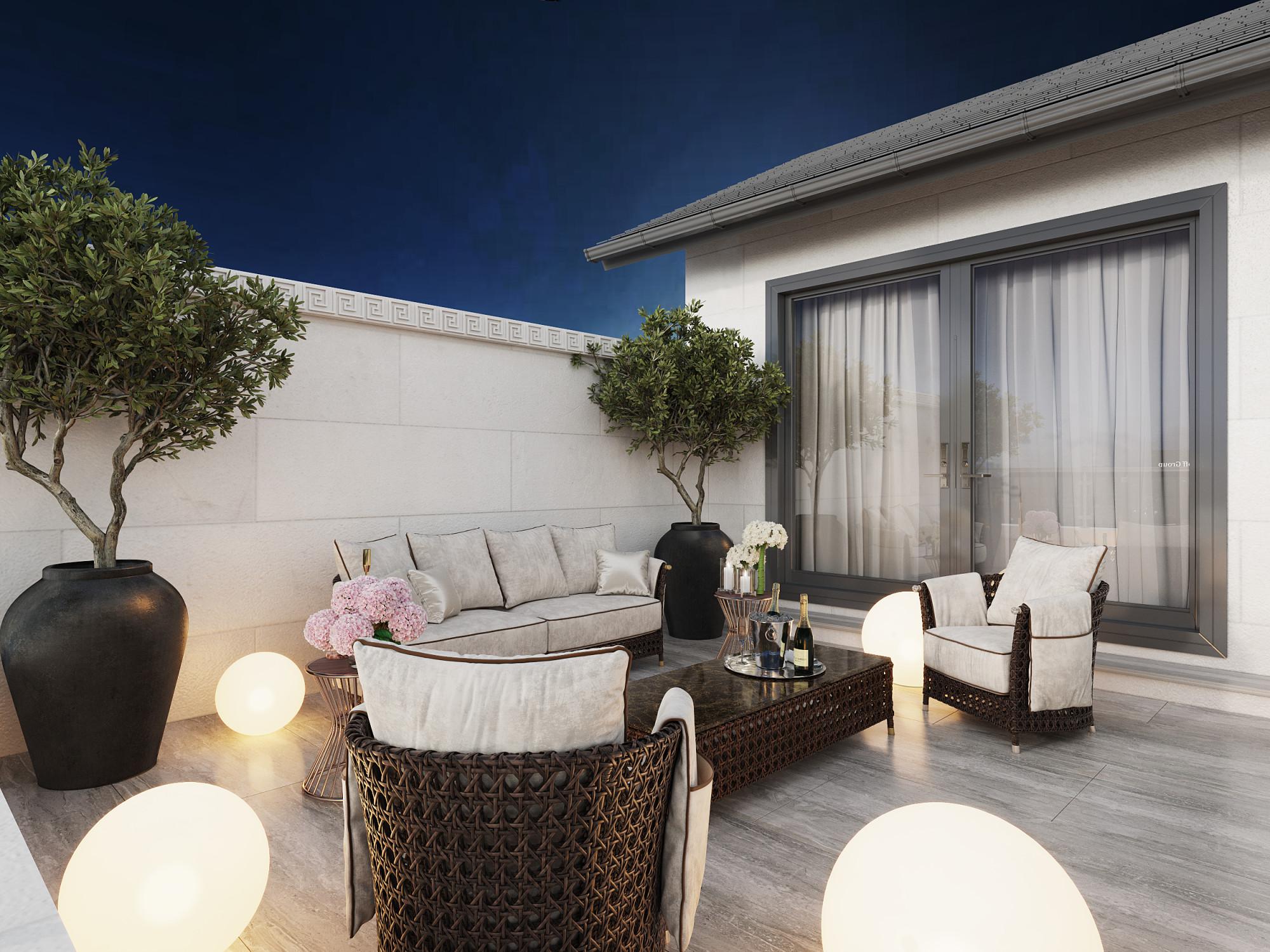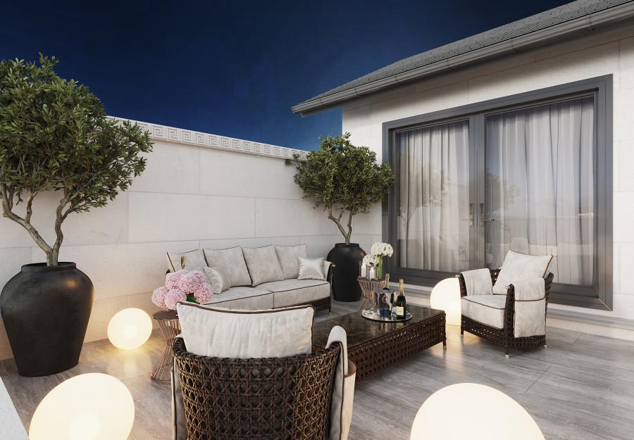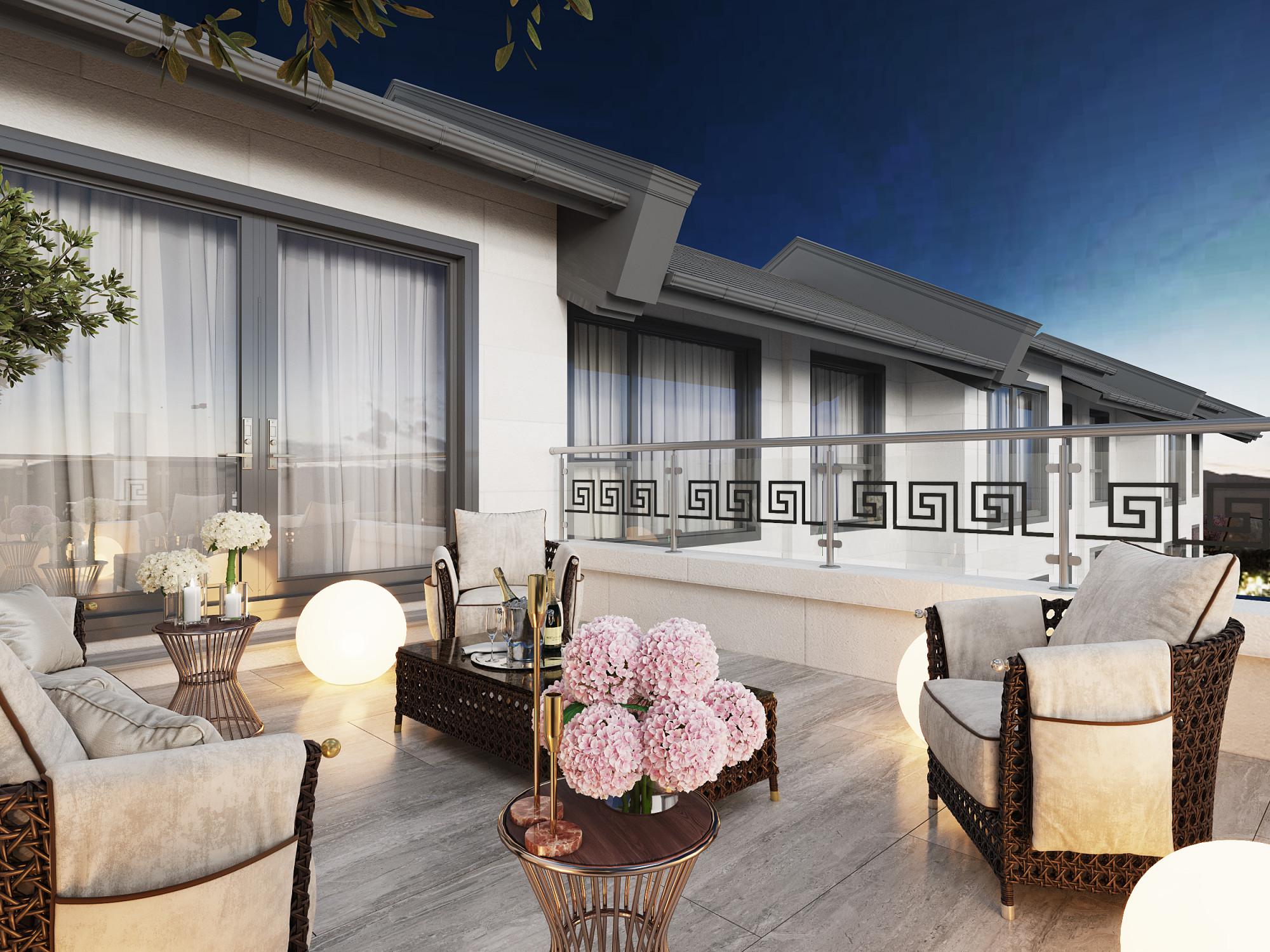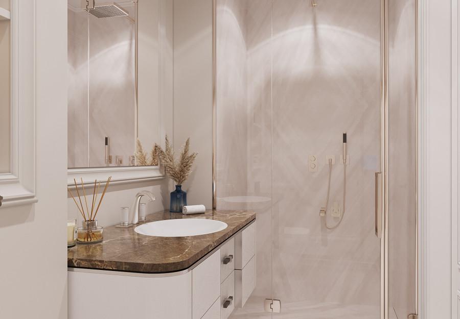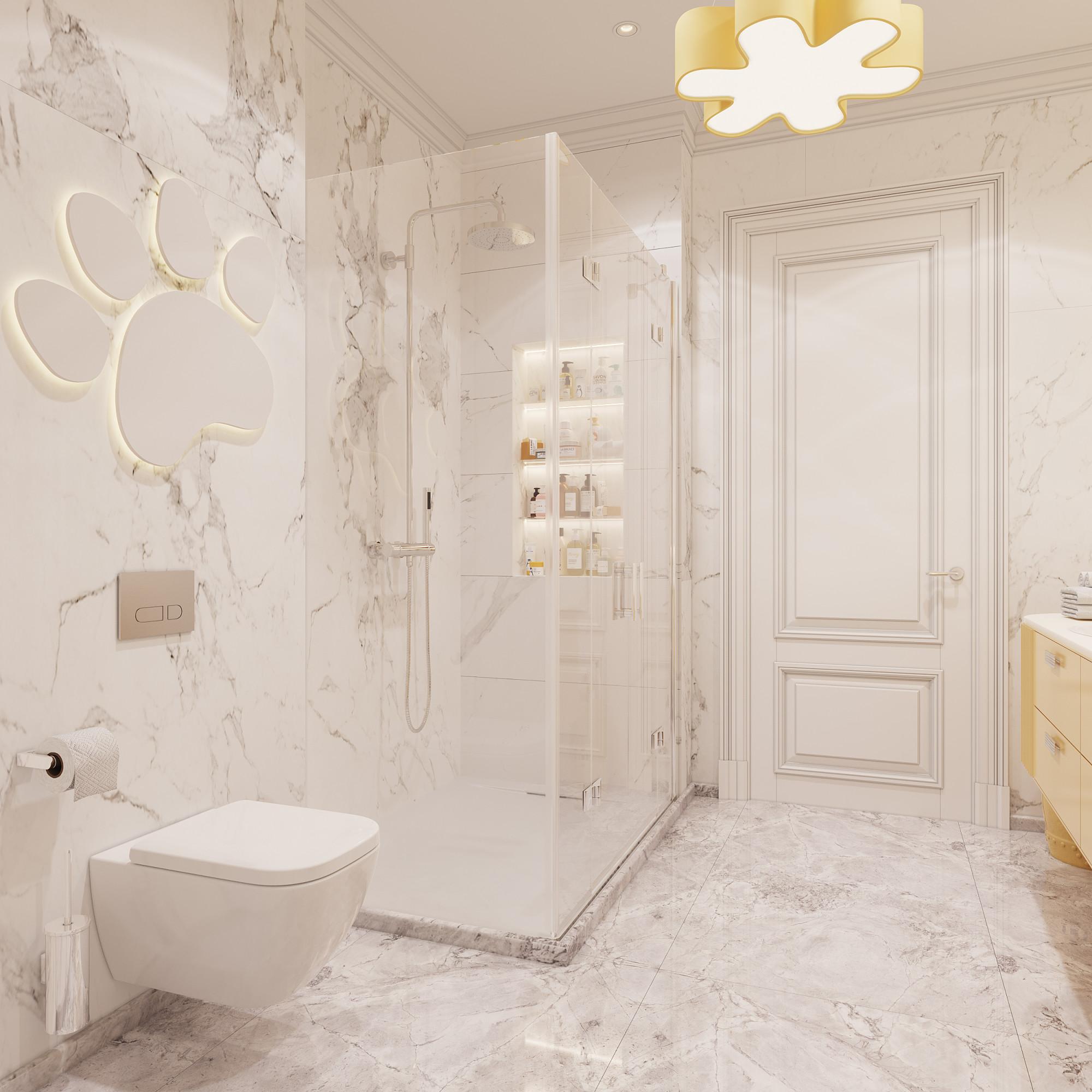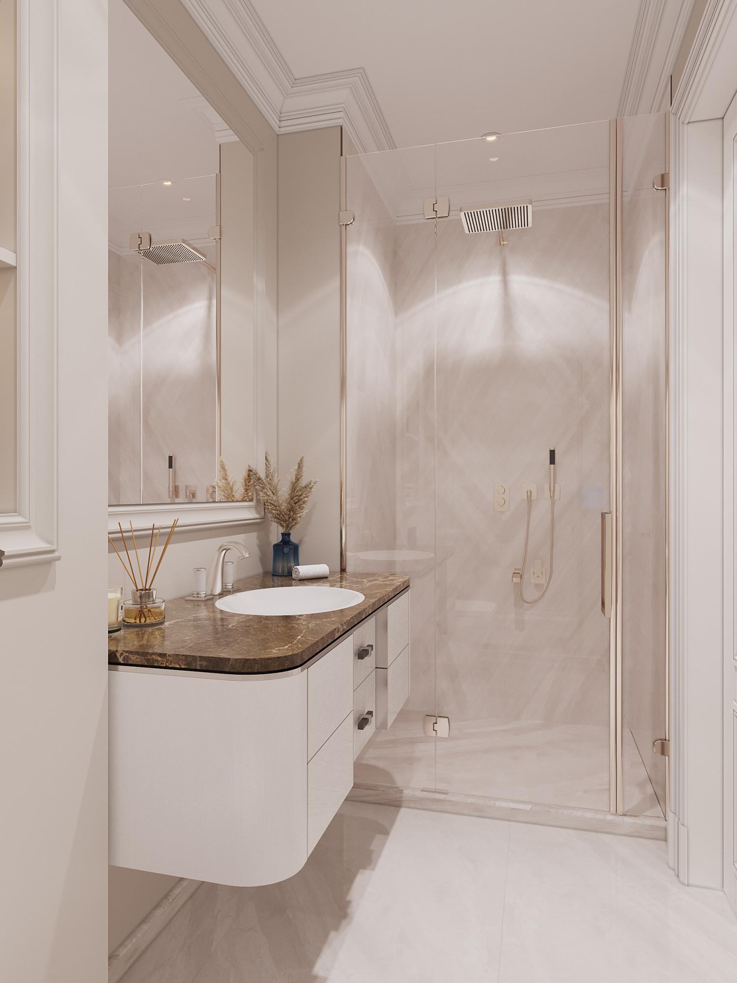 Интерьер дома выполнен в стиле неоклассика, что видно по изысканным деталям и нейтральной цветовой гамме. Основные материалы включают мрамор, который используется для отделки стен и пола, создавая ощущение роскоши и элегантности. Мебель в светлых тонах с удобной посадкой обеспечивает комфорт, а декоративные подушки и текстиль добавляют уюта. Освещение в комнатах продумано до мелочей: настенные бра, люстры и торшеры сделали пространство еще более эффектным. Интерьер привлекает балансом между красотой и практичностью, а также способностью создавать атмосферу роскоши и уюта одновременно.