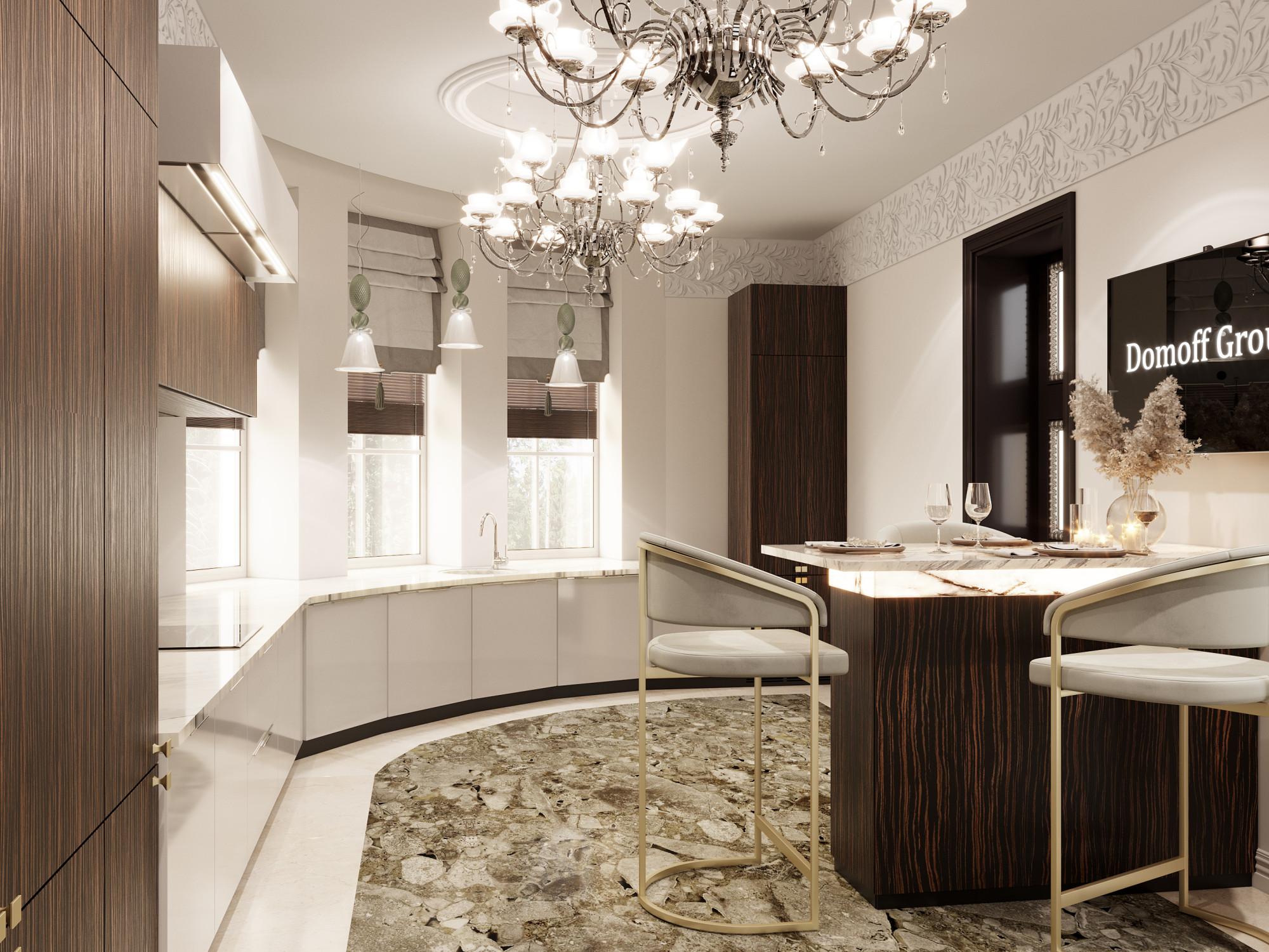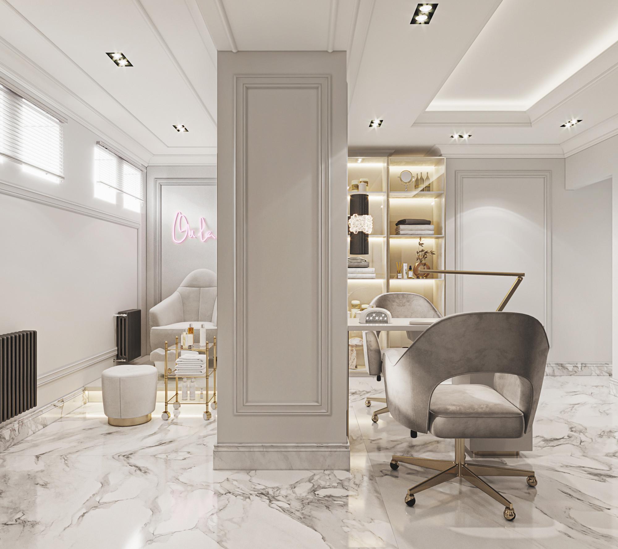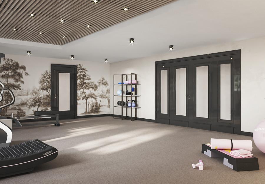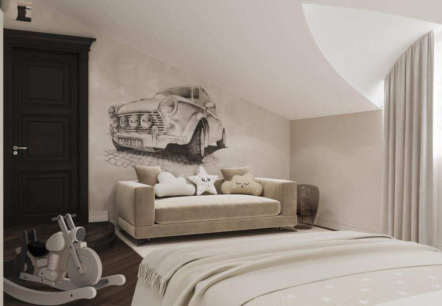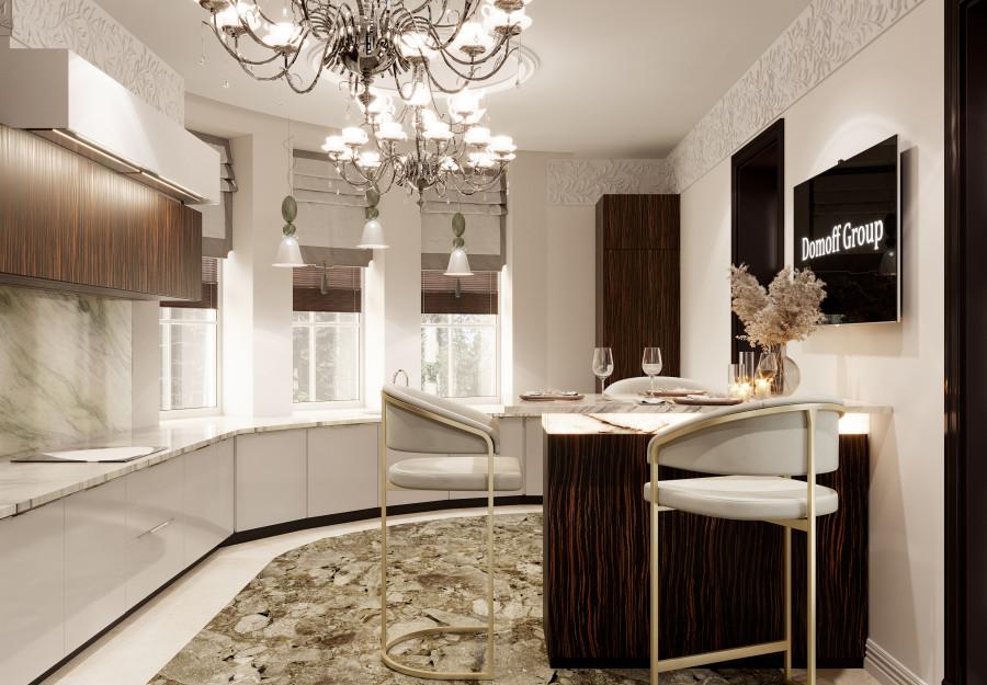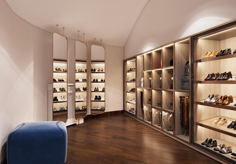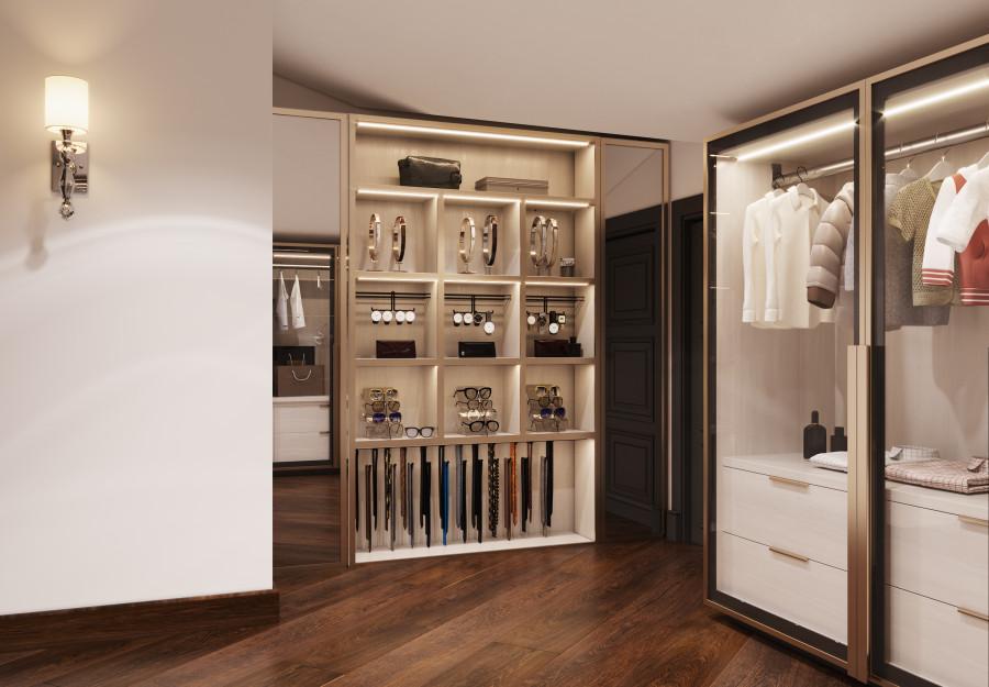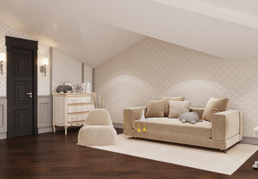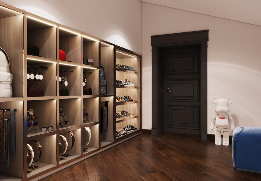 Интерьер дома выдержан в классическом стиле с элементами роскоши и предметами современного дизайна, что делает пространство одновременно элегантным и комфортным. Одним из главных хитов проекта является холл: здесь пол выполнен из мрамора с уникальным узором, где черные и белые элементы переплетаются, создавая эффект водной глади. Золотые скульптуры на пьедесталах добавляют интерьеру динамики и подчеркивают статусность. Они выполнены в виде животных, что придает пространству нотку экзотики. Цветовая палитра в основном светлая, за счет чего комнаты смотрятся просторнее. Бонус: две террасы с уютной зоной отдыха.