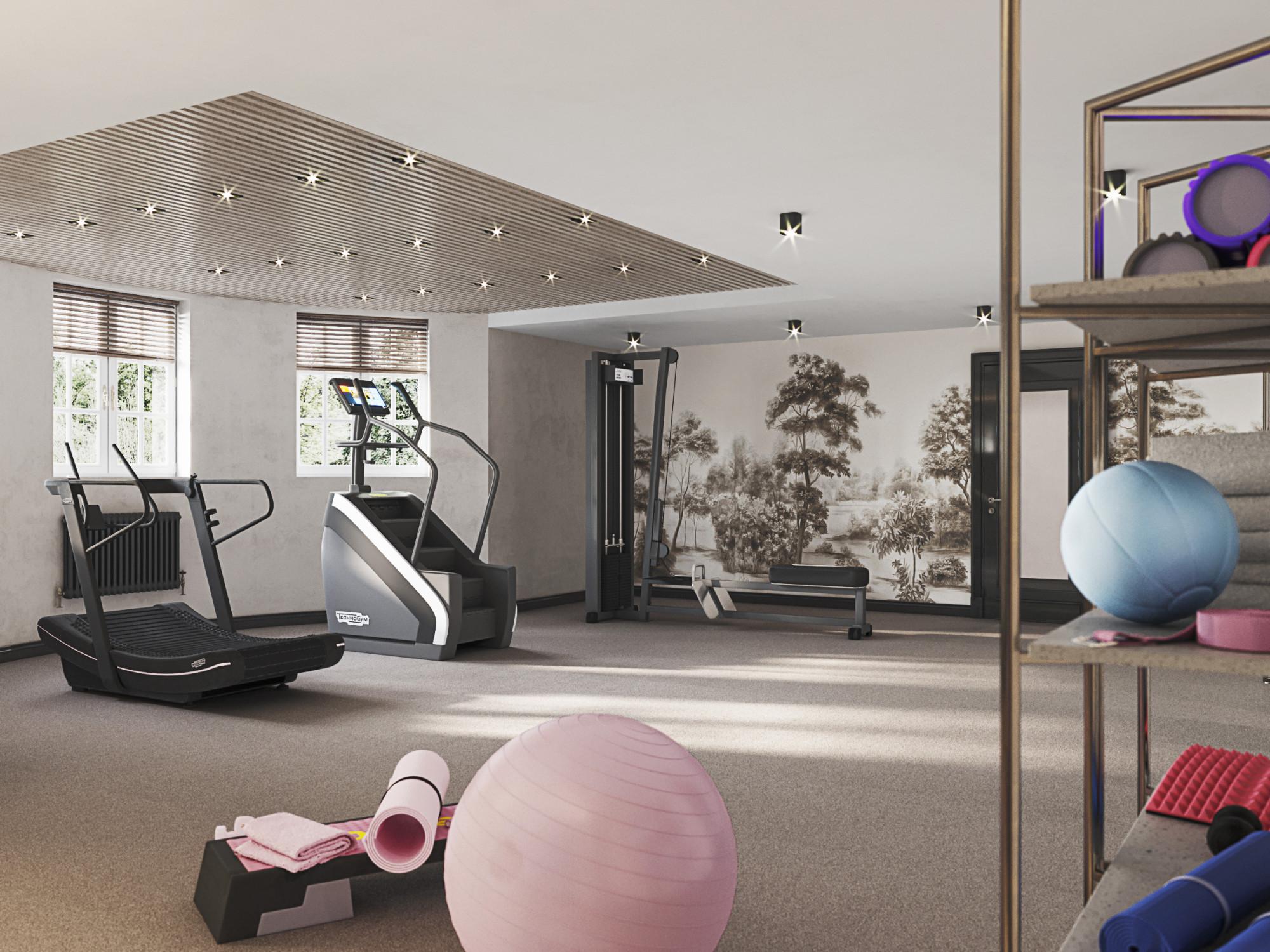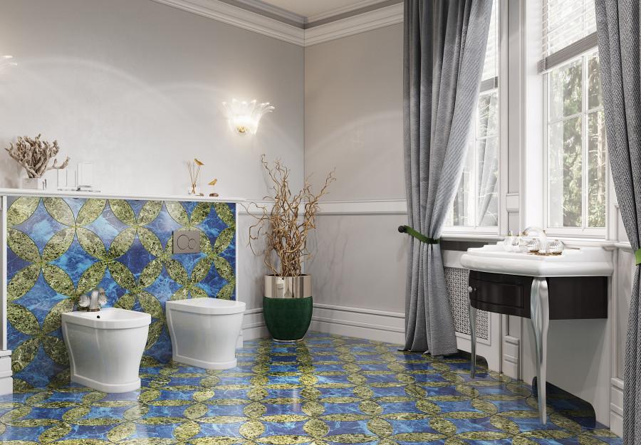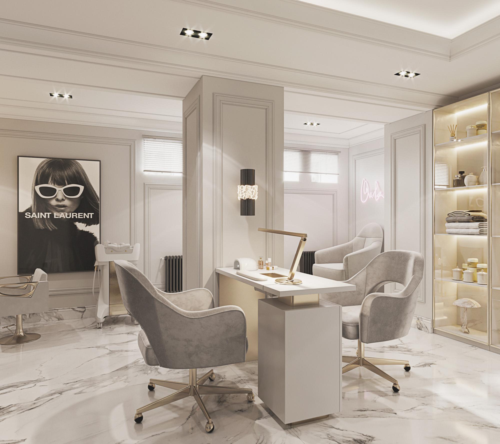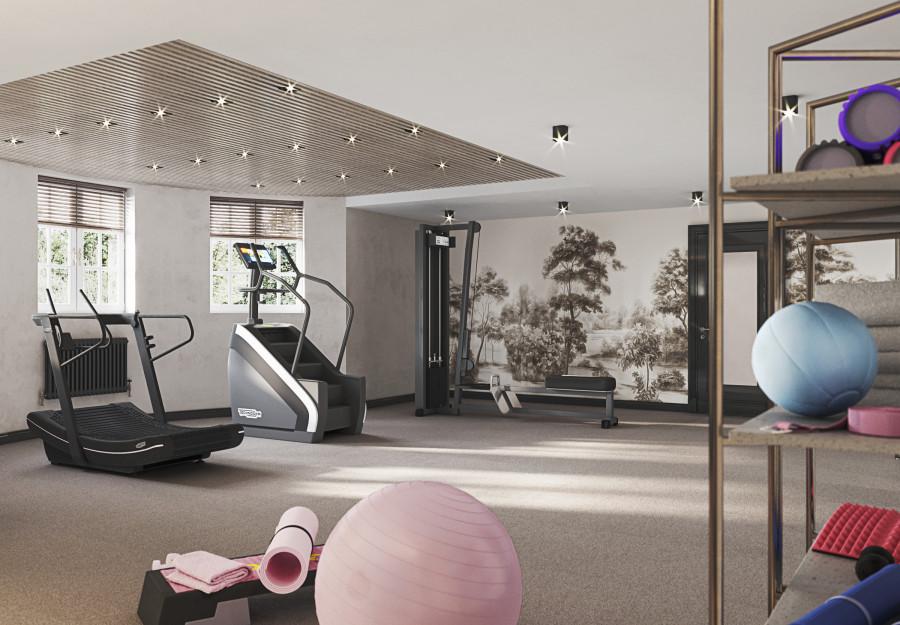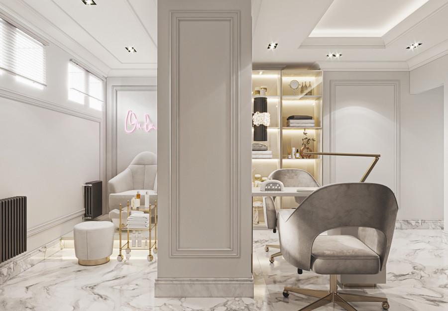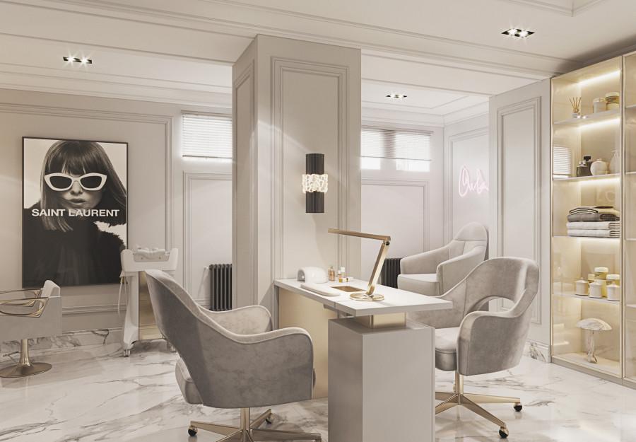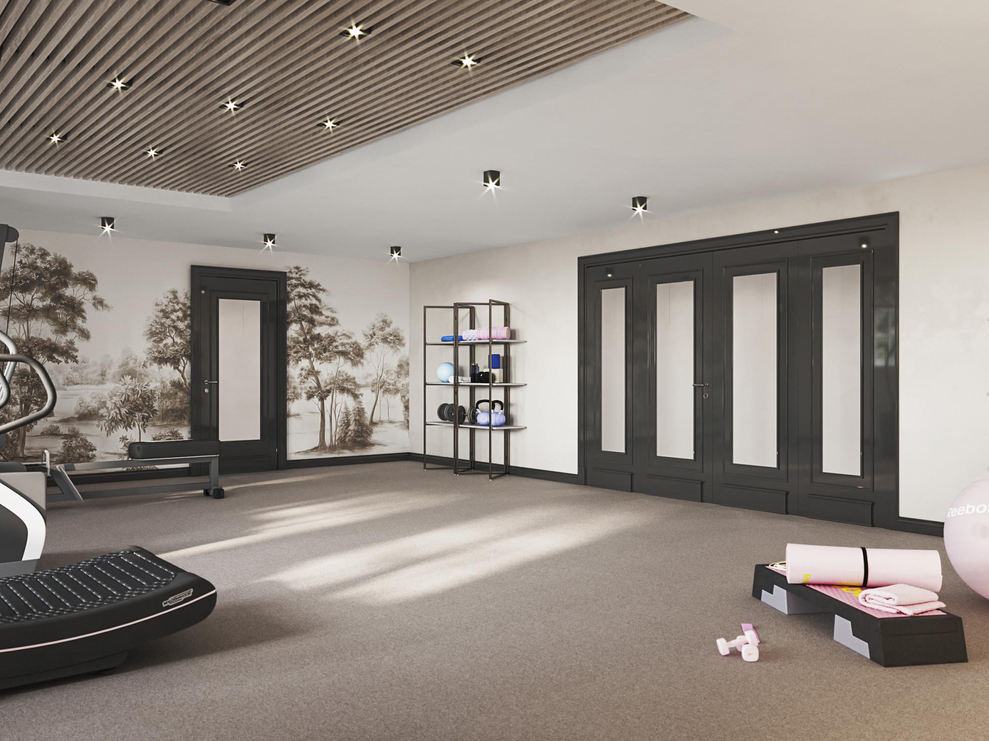 Интерьер дома выдержан в классическом стиле с элементами роскоши и предметами современного дизайна, что делает пространство одновременно элегантным и комфортным. Одним из главных хитов проекта является холл: здесь пол выполнен из мрамора с уникальным узором, где черные и белые элементы переплетаются, создавая эффект водной глади. Золотые скульптуры на пьедесталах добавляют интерьеру динамики и подчеркивают статусность. Они выполнены в виде животных, что придает пространству нотку экзотики. Цветовая палитра в основном светлая, за счет чего комнаты смотрятся просторнее. Бонус: две террасы с уютной зоной отдыха.