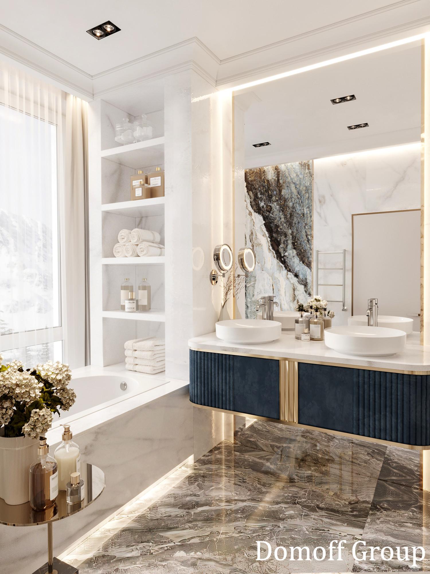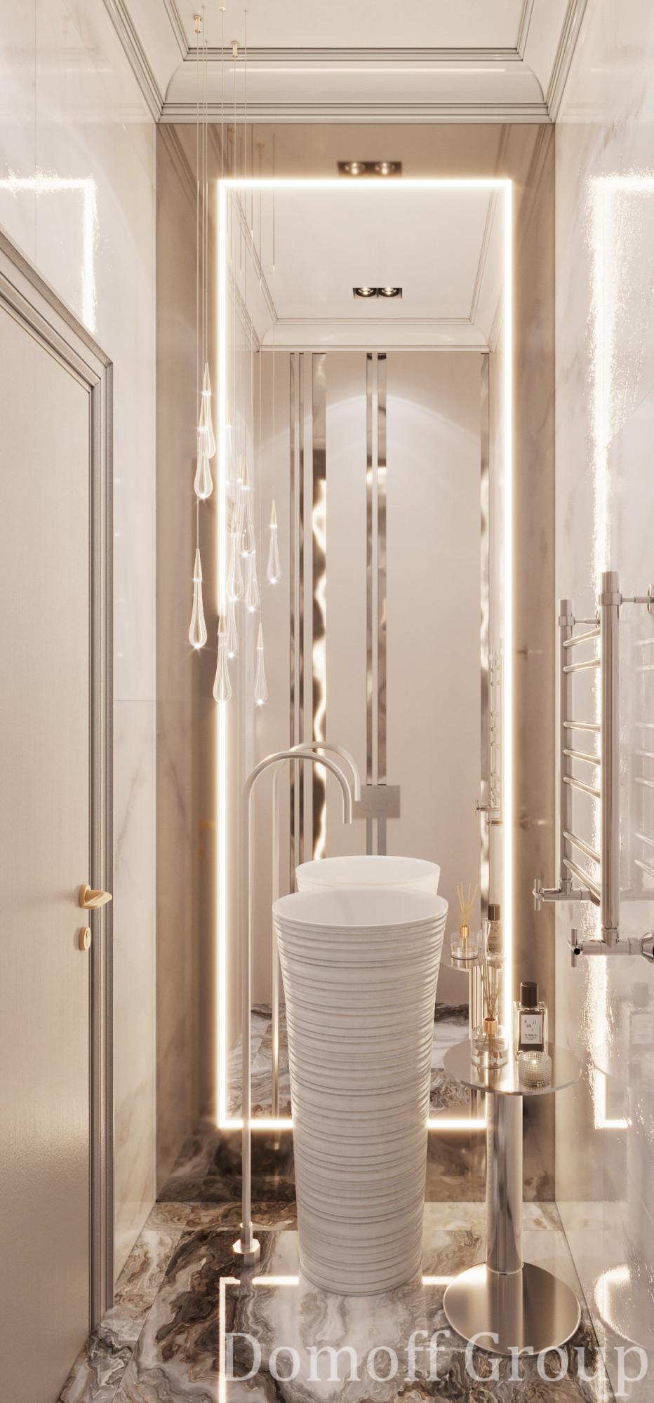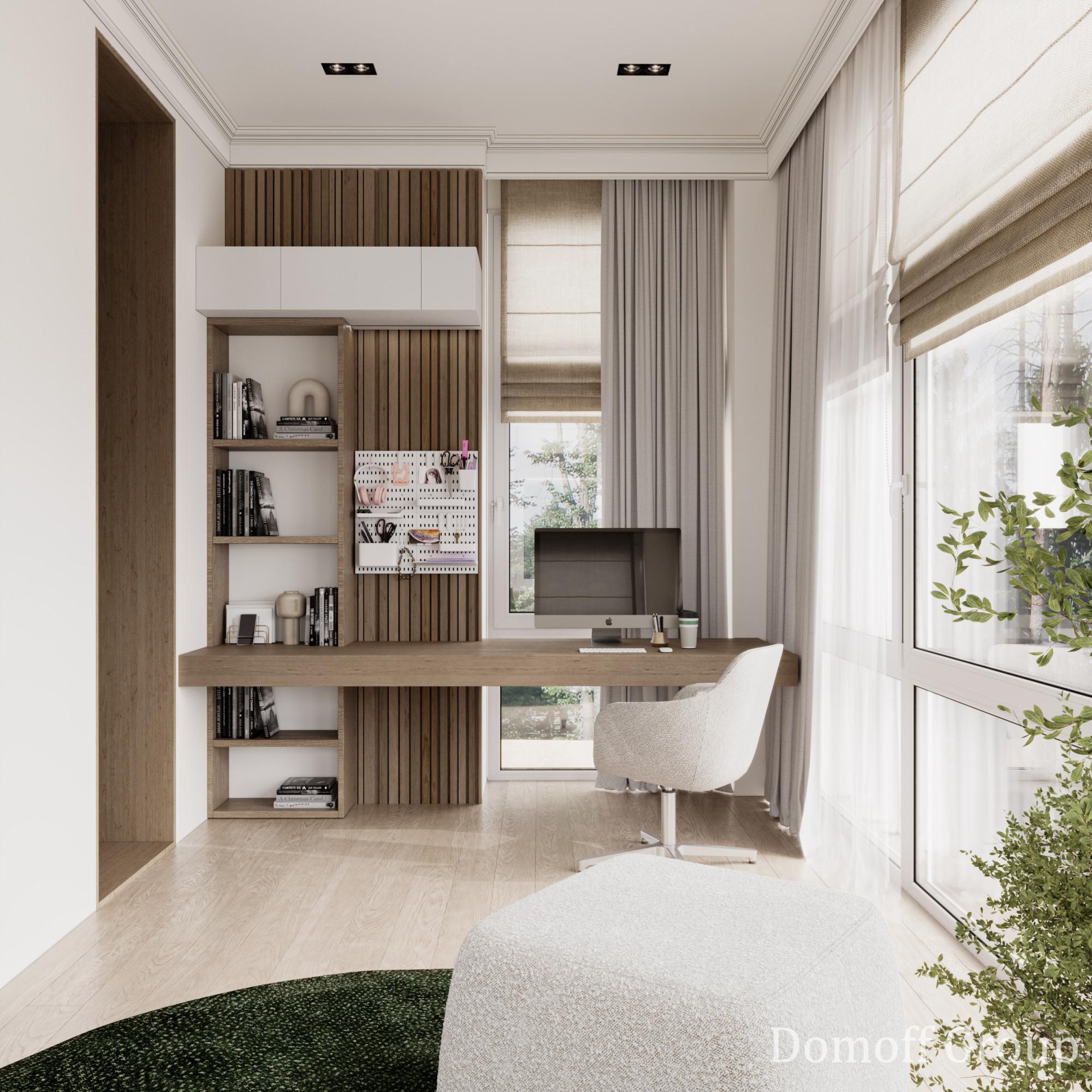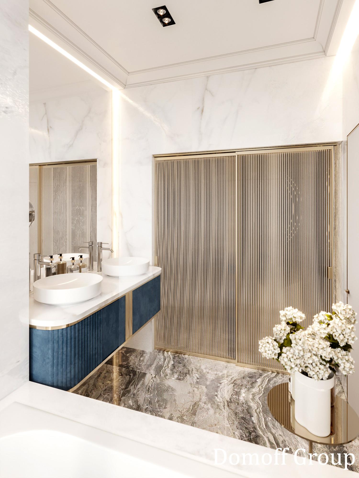 Интерьер этого дома - настоящее воплощение современного минимализма с элементами классики. Панорамные окна наполняют пространство светом и создают ощущение простора. Они также делают природу частью интерьера, что добавляет уюта. Цветовая палитра выдержана в нейтральных тонах, которые создают атмосферу чистоты и спокойствия, а золотистые акценты в декоративных элементах добавляют изысканности и тепла. Такой интерьер идеально подойдет для тех, кто ценит комфорт, стиль и гармонию.