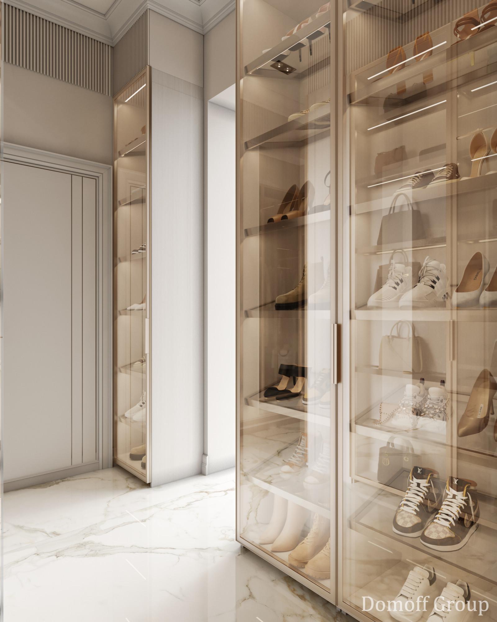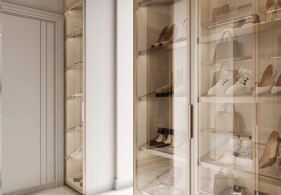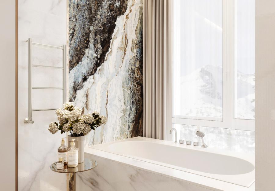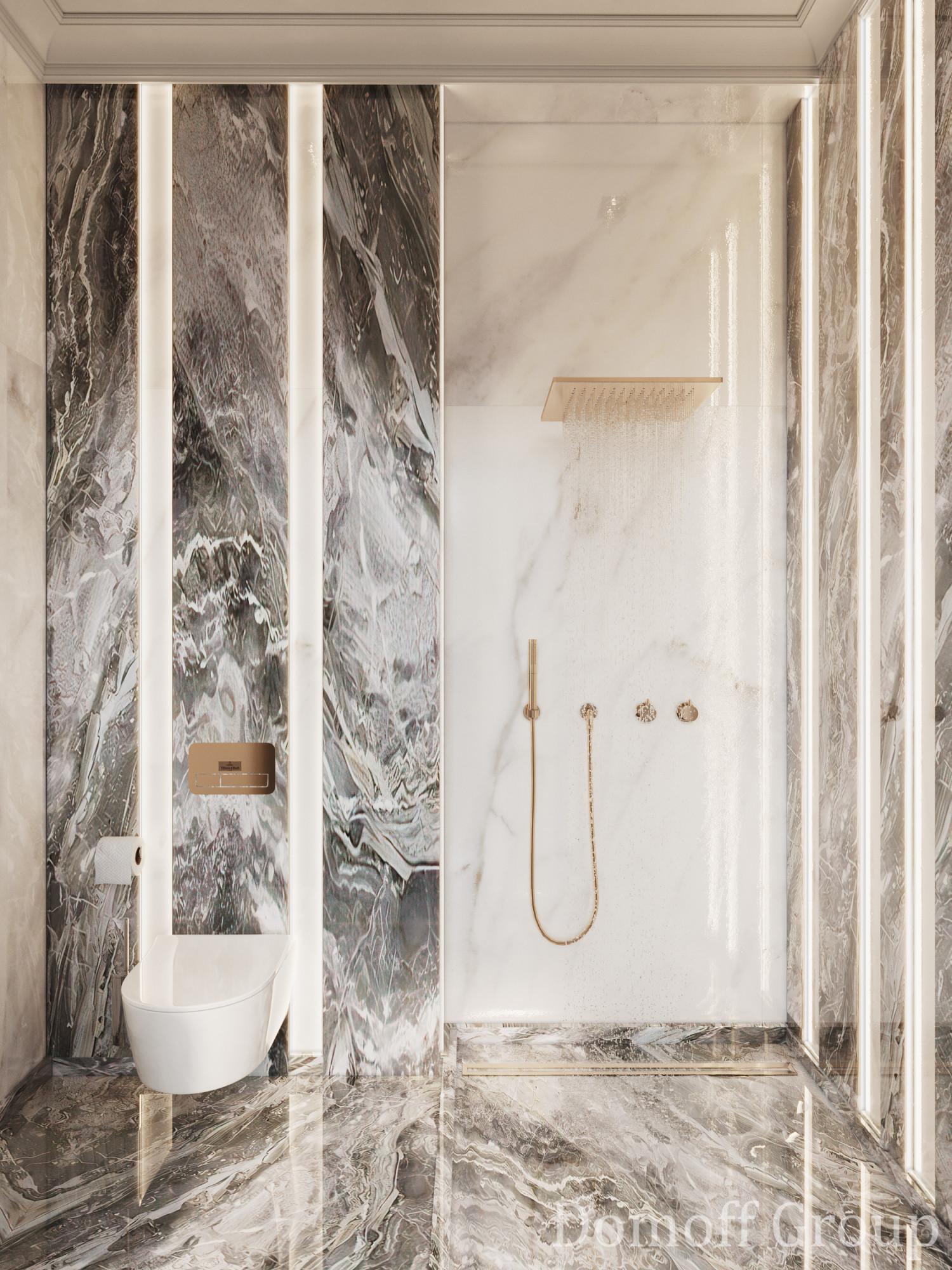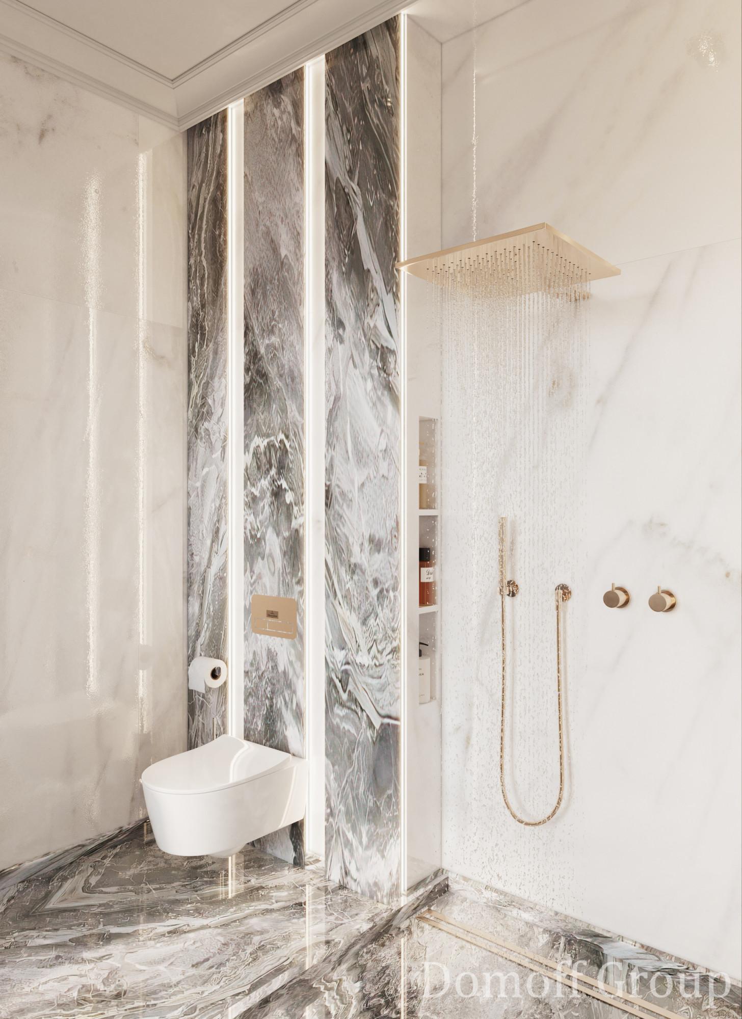 Интерьер этого дома - настоящее воплощение современного минимализма с элементами классики. Панорамные окна наполняют пространство светом и создают ощущение простора. Они также делают природу частью интерьера, что добавляет уюта. Цветовая палитра выдержана в нейтральных тонах, которые создают атмосферу чистоты и спокойствия, а золотистые акценты в декоративных элементах добавляют изысканности и тепла. Такой интерьер идеально подойдет для тех, кто ценит комфорт, стиль и гармонию.