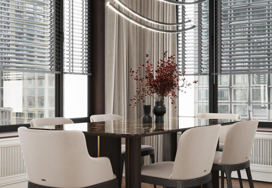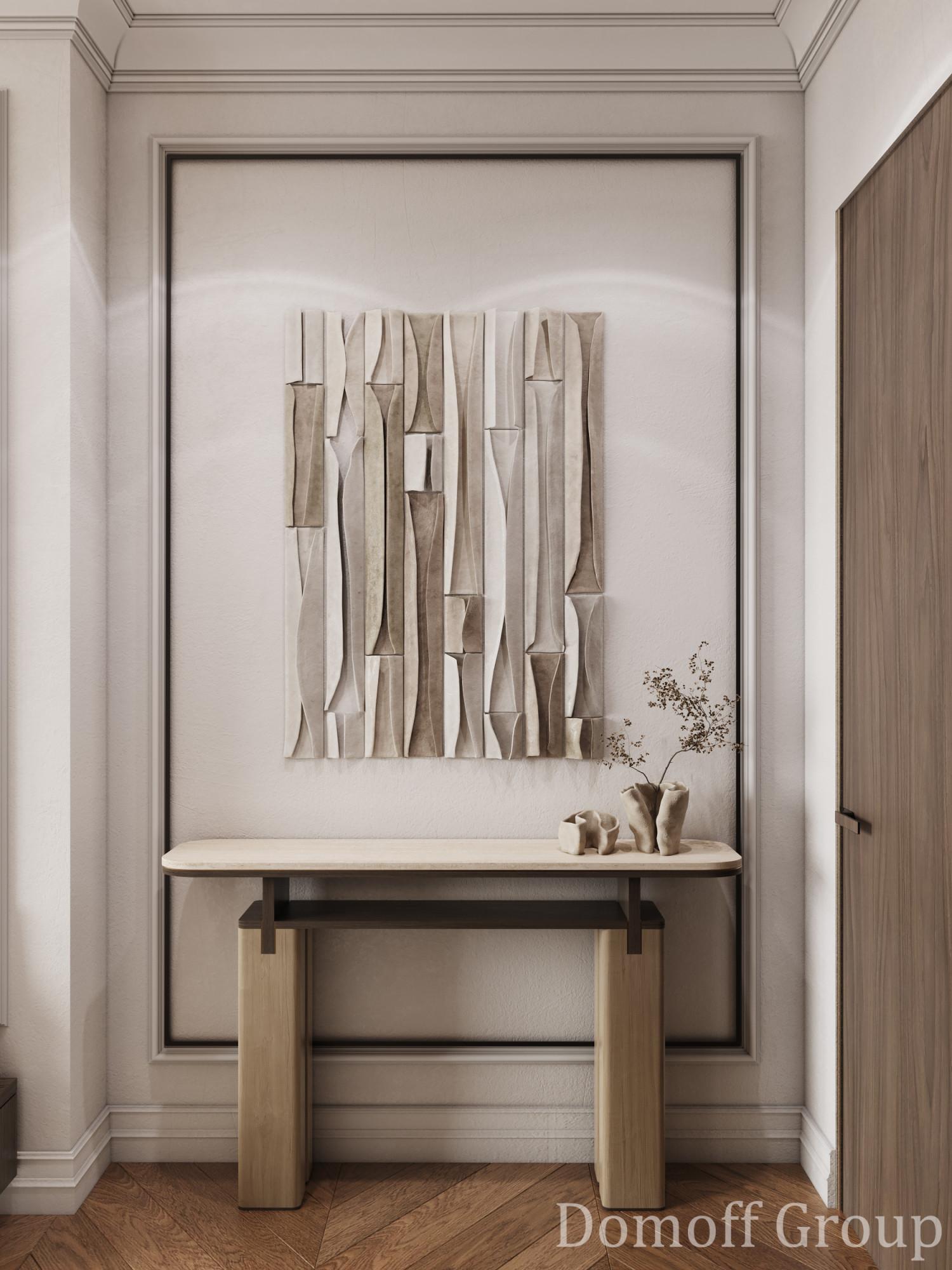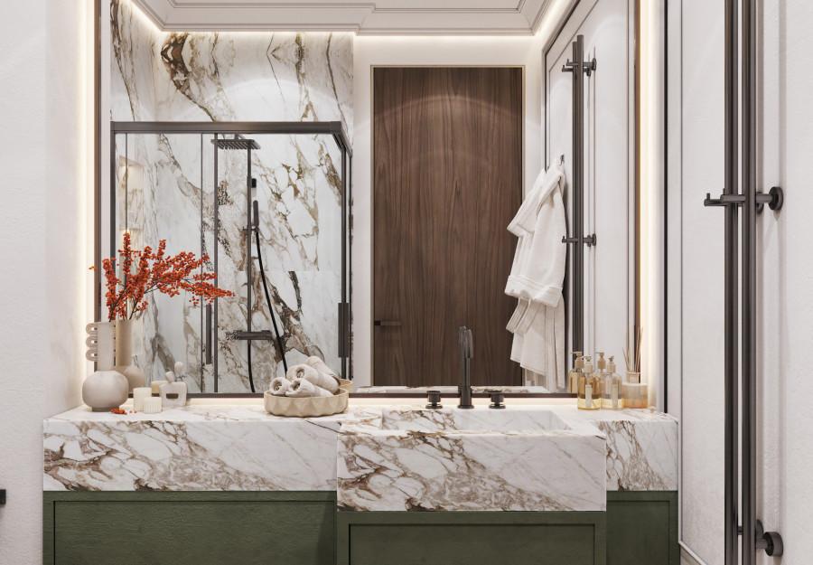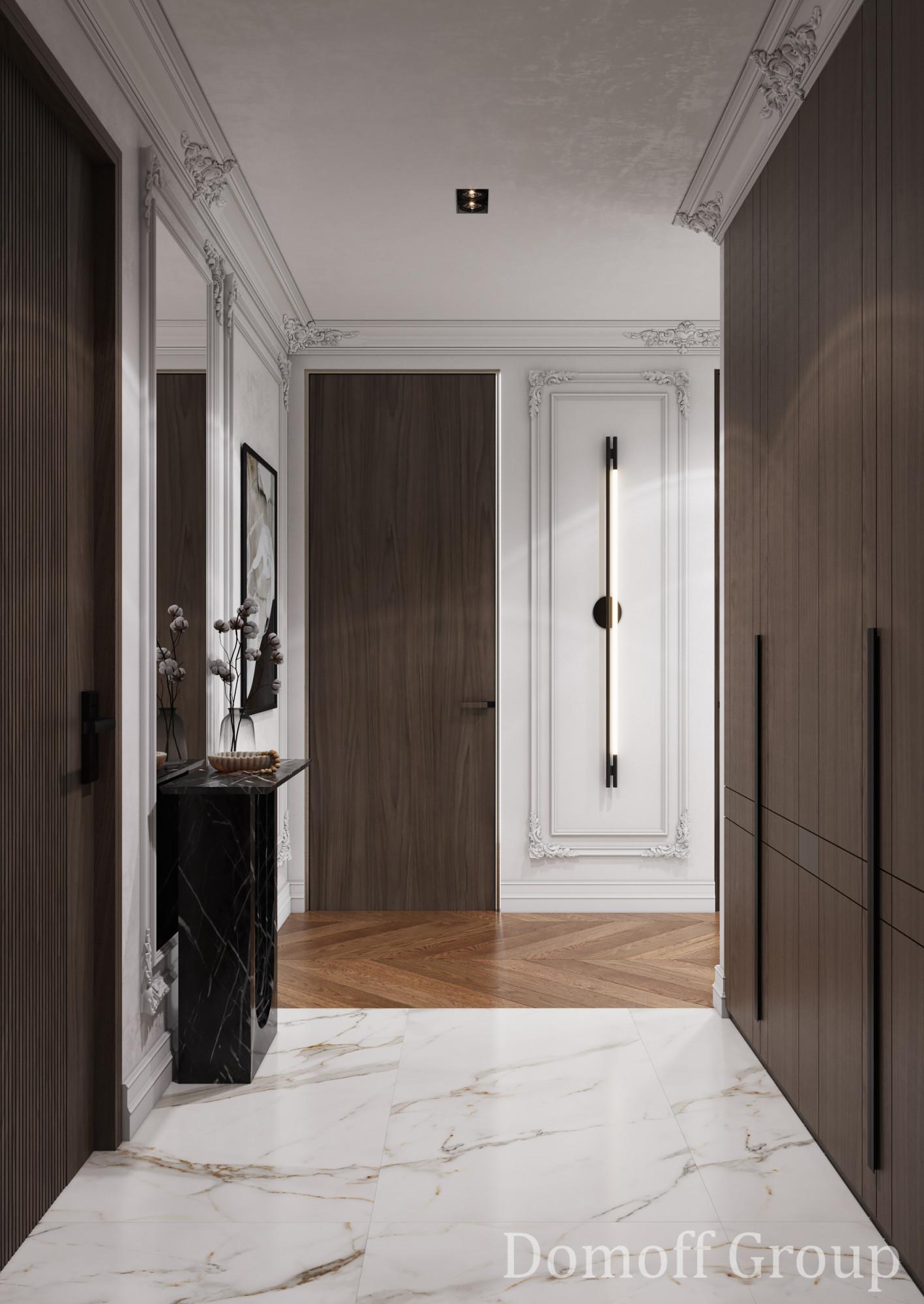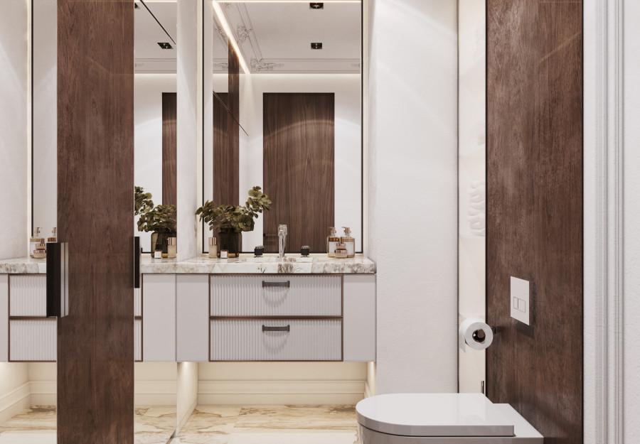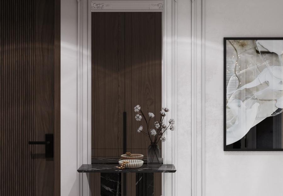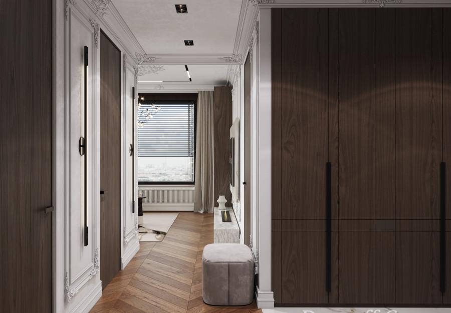 В основе проекта - стиль современная классика с легко узнаваемыми элементами. Строгие линии мебели, выполненной из качественных материалов премиум-класса, нейтральная палитра, представленная в интерьере трендовыми оттенками 2025 года, и изысканные детали декора делают пространство идеальным для тех, кто ценит комфорт, практичность и стиль.