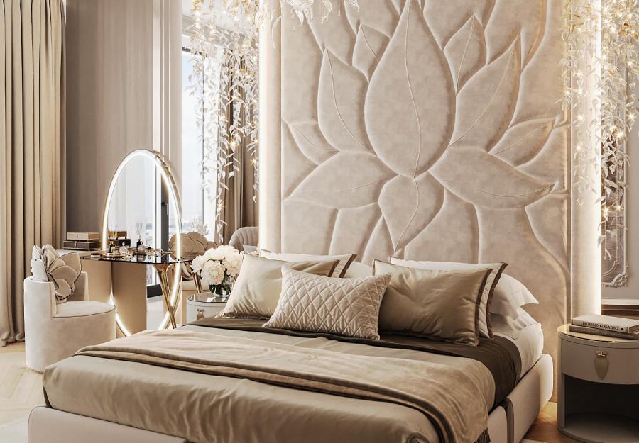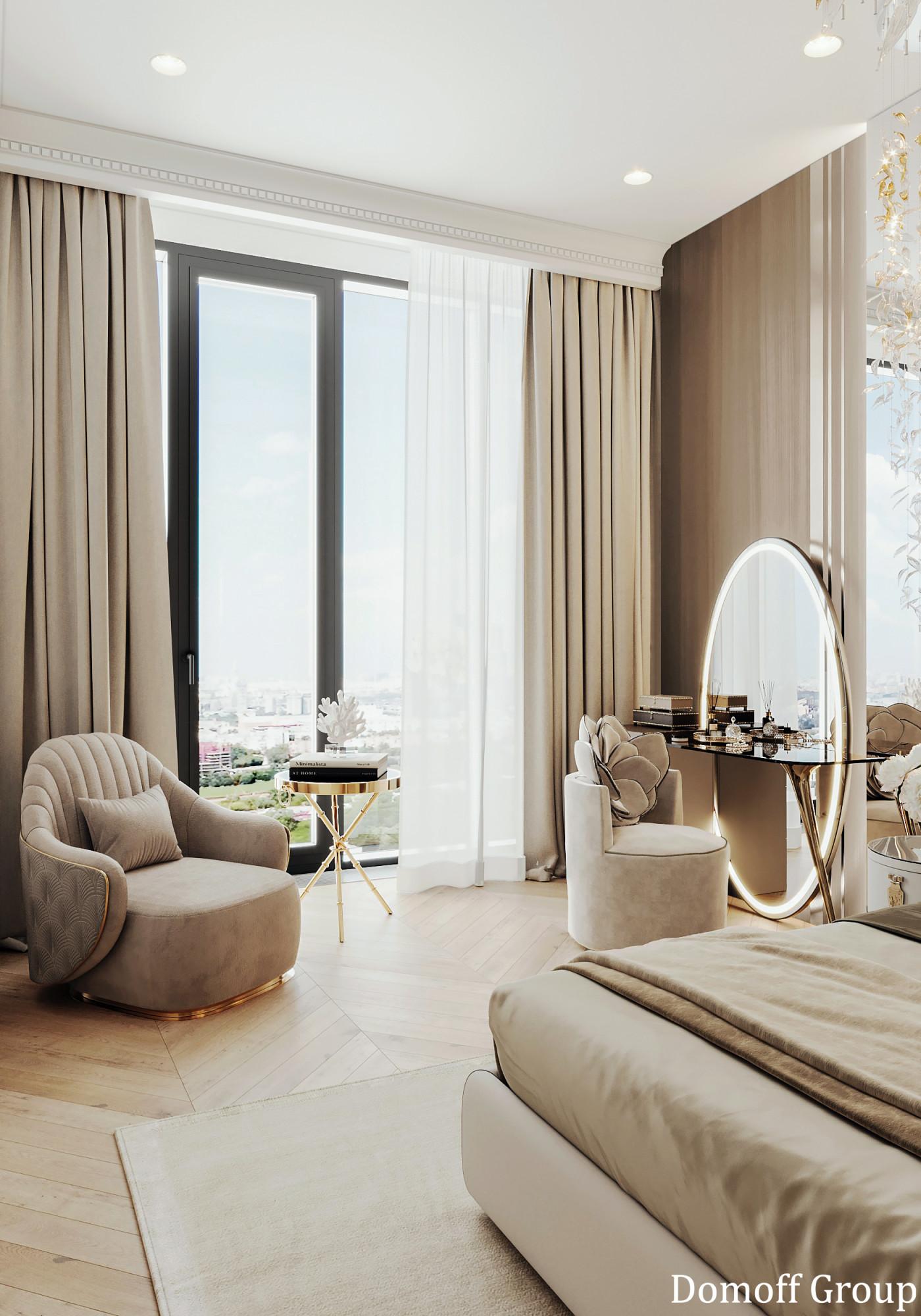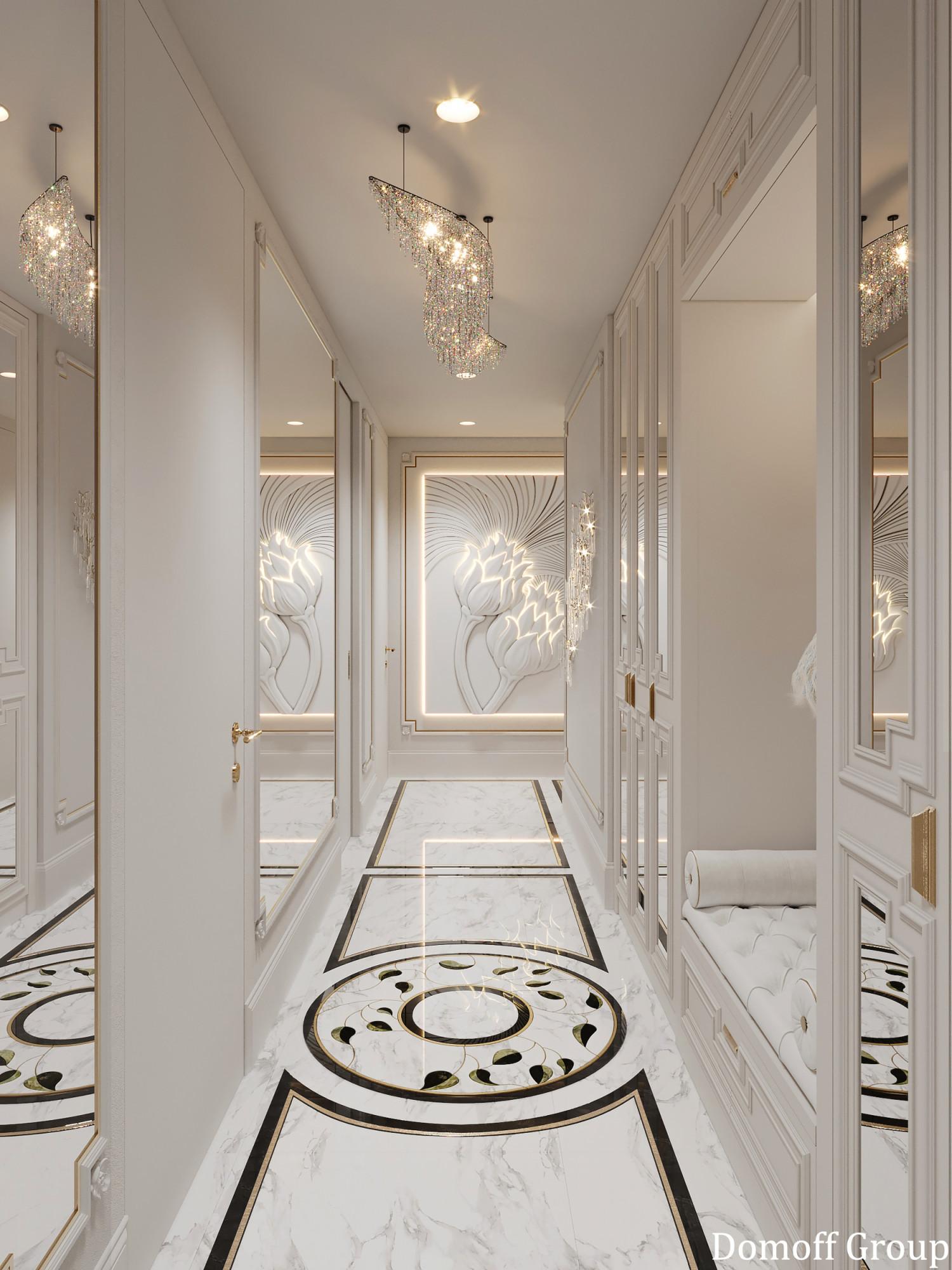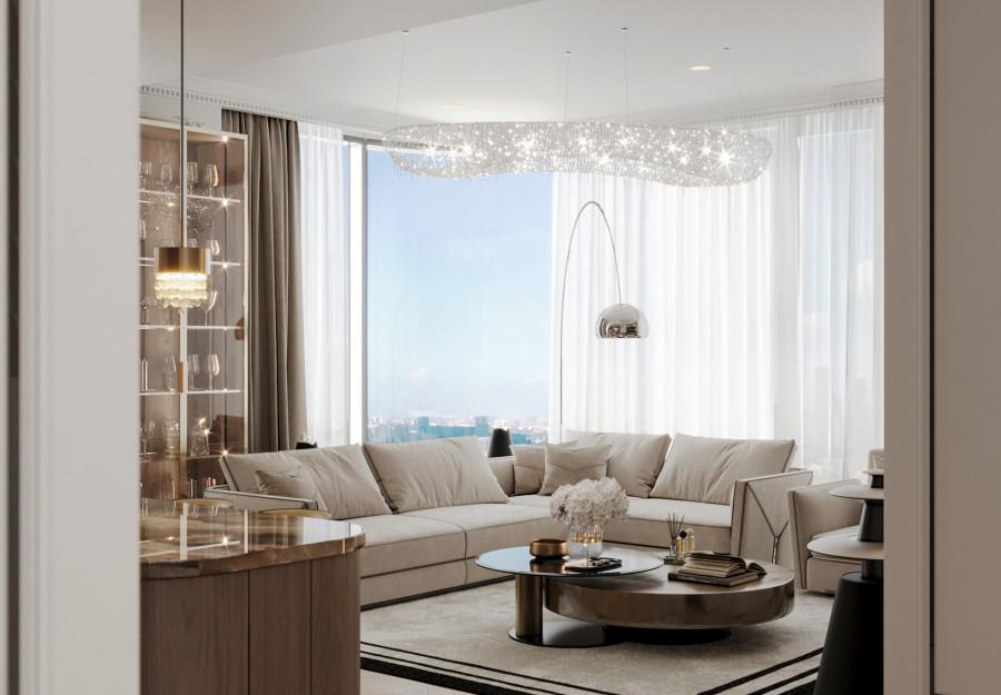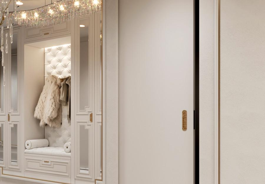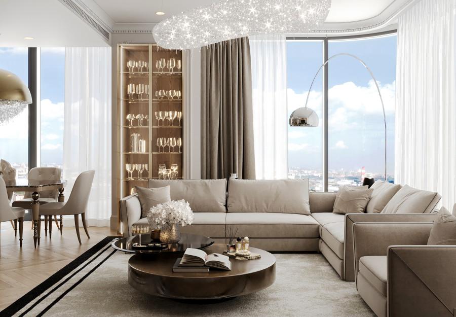 Интерьер выполнен в современном стиле с элементами классики. Минималистичный подход к декору с акцентом на натуральные материалы и текстуры делает его стильным и функциональным. Использование мрамора на стенах и в декоре придает элегантность. Светлые тона визуально расширяют пространство, а лаконичные формы мебели подчеркивают принадлежность стилю “вне времени”.