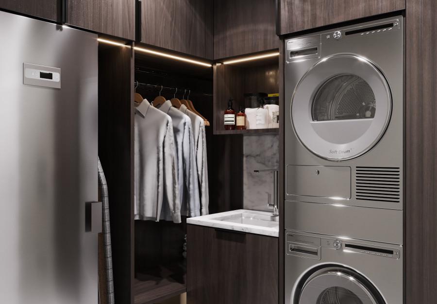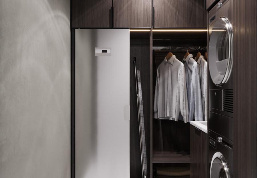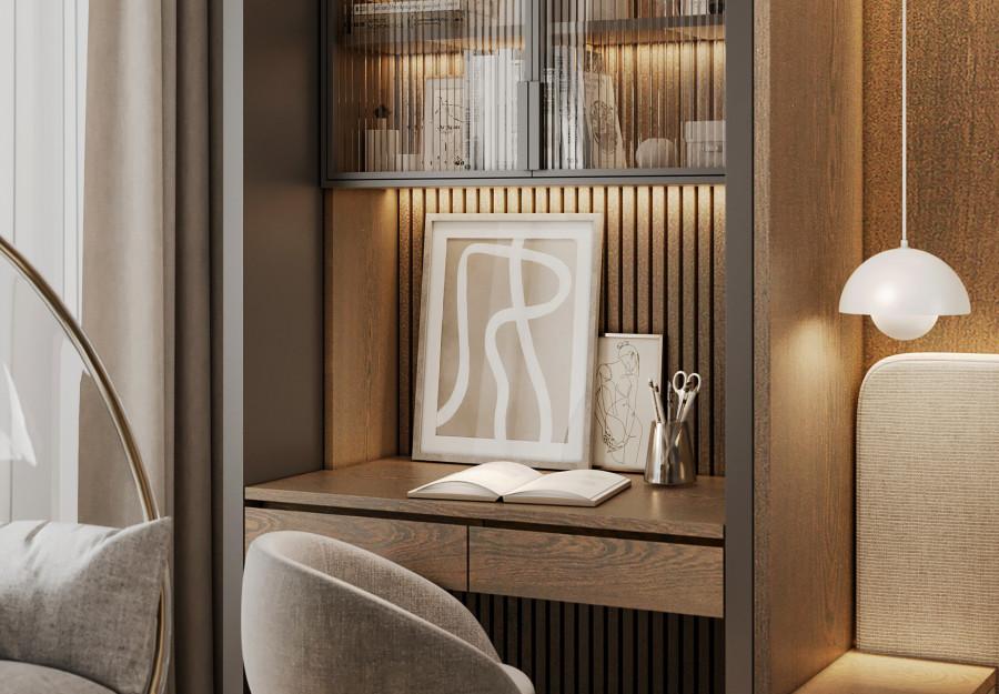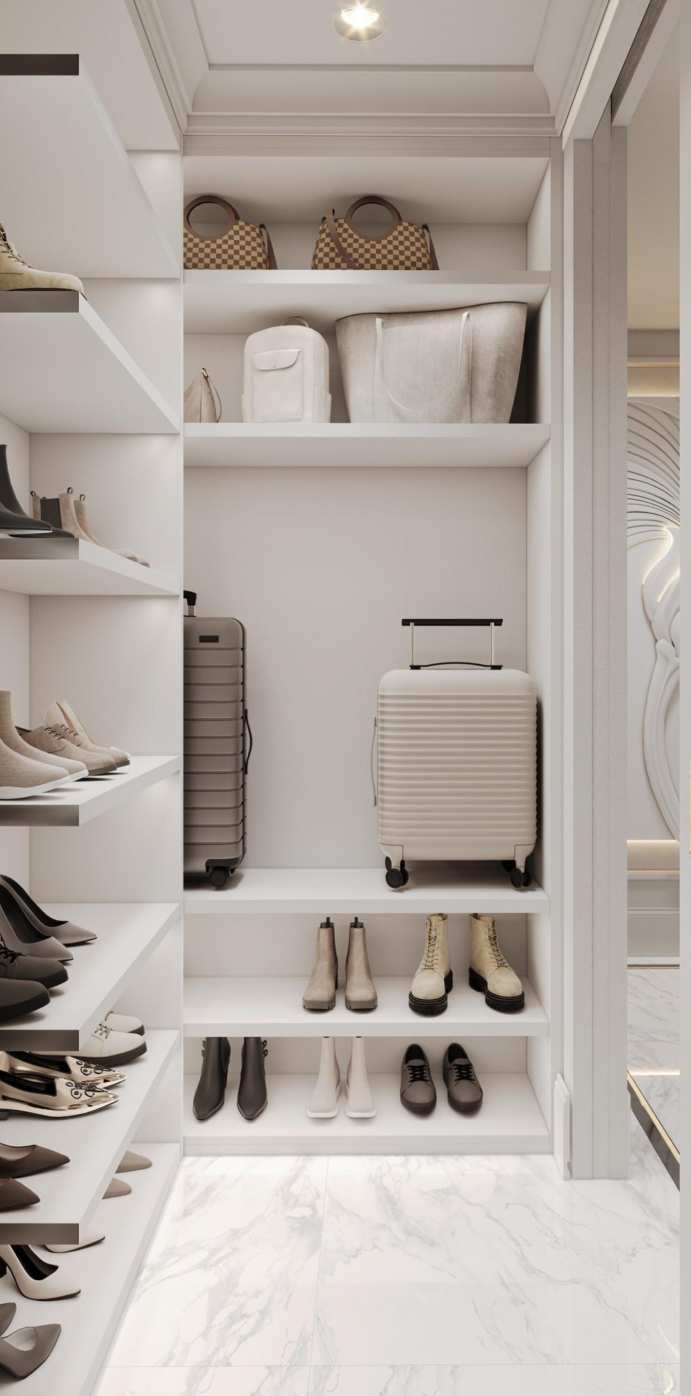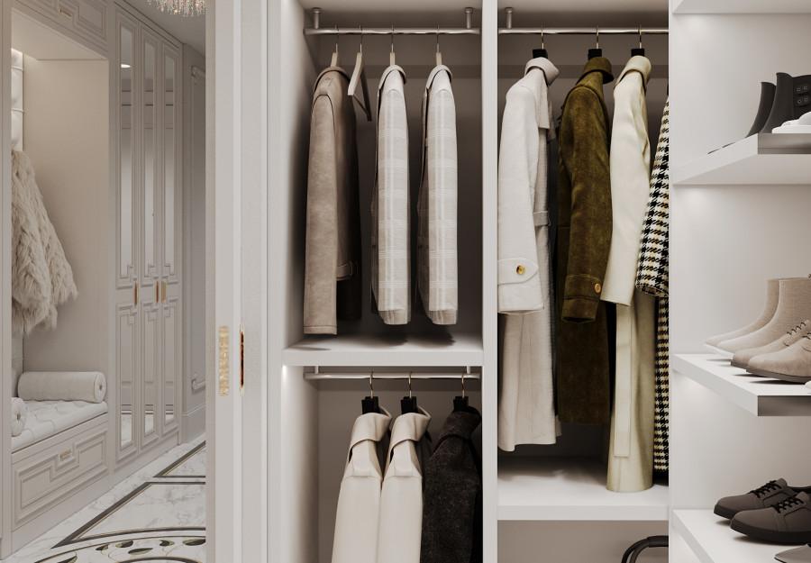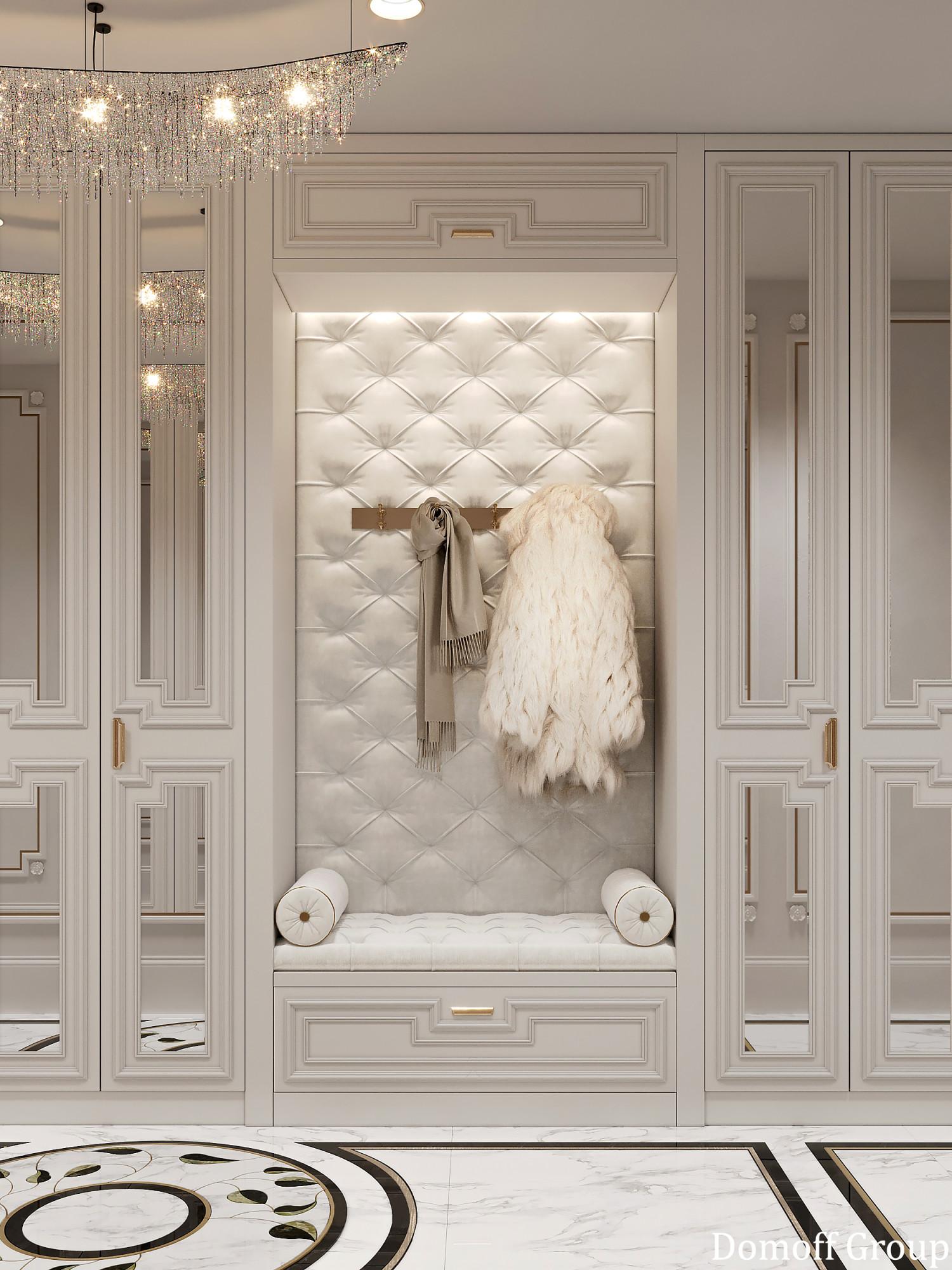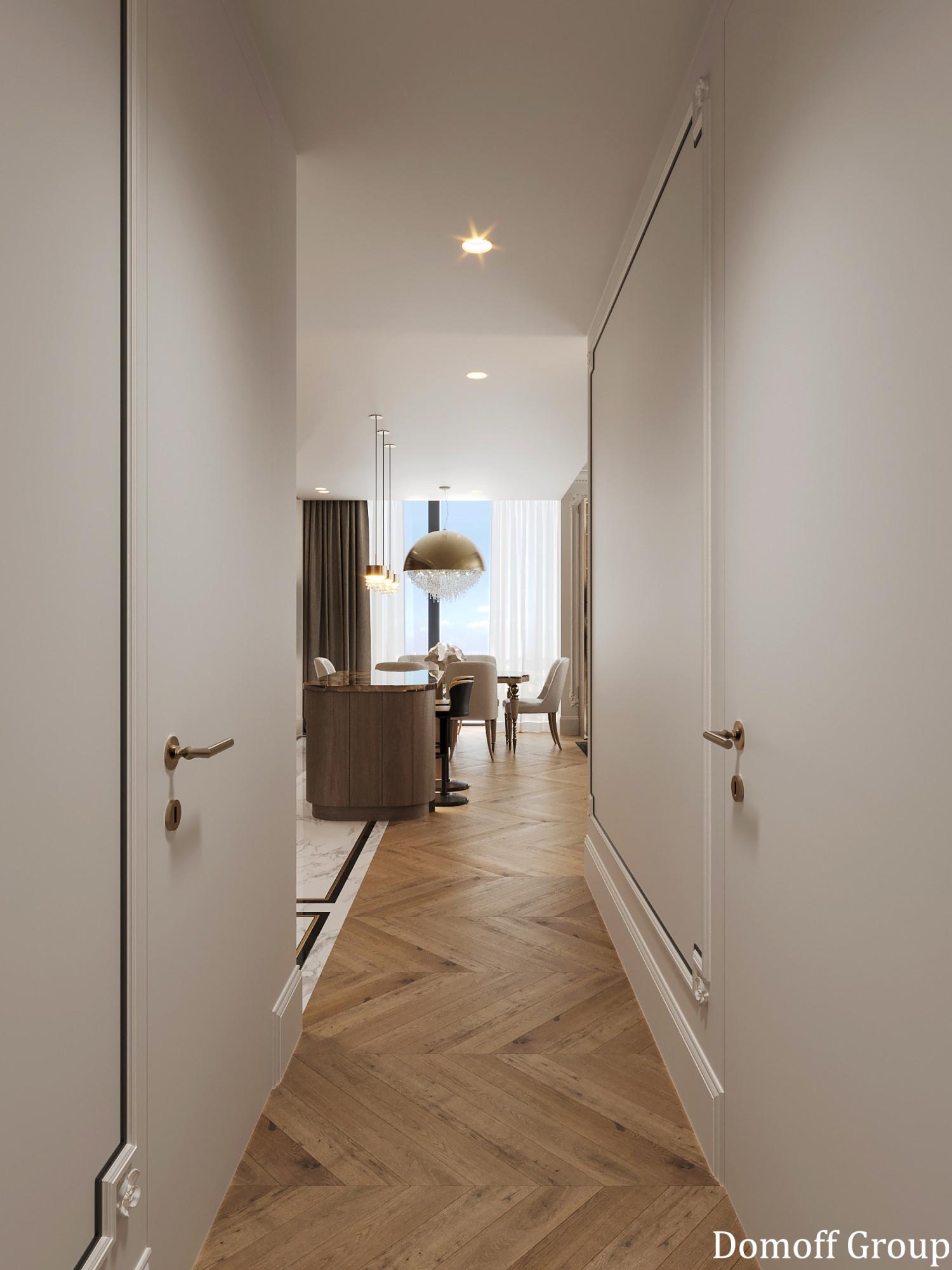Интерьер выполнен в современном стиле с элементами классики. Минималистичный подход к декору с акцентом на натуральные материалы и текстуры делает его стильным и функциональным. Использование мрамора на стенах и в декоре придает элегантность. Светлые тона визуально расширяют пространство, а лаконичные формы мебели подчеркивают принадлежность стилю “вне времени”.