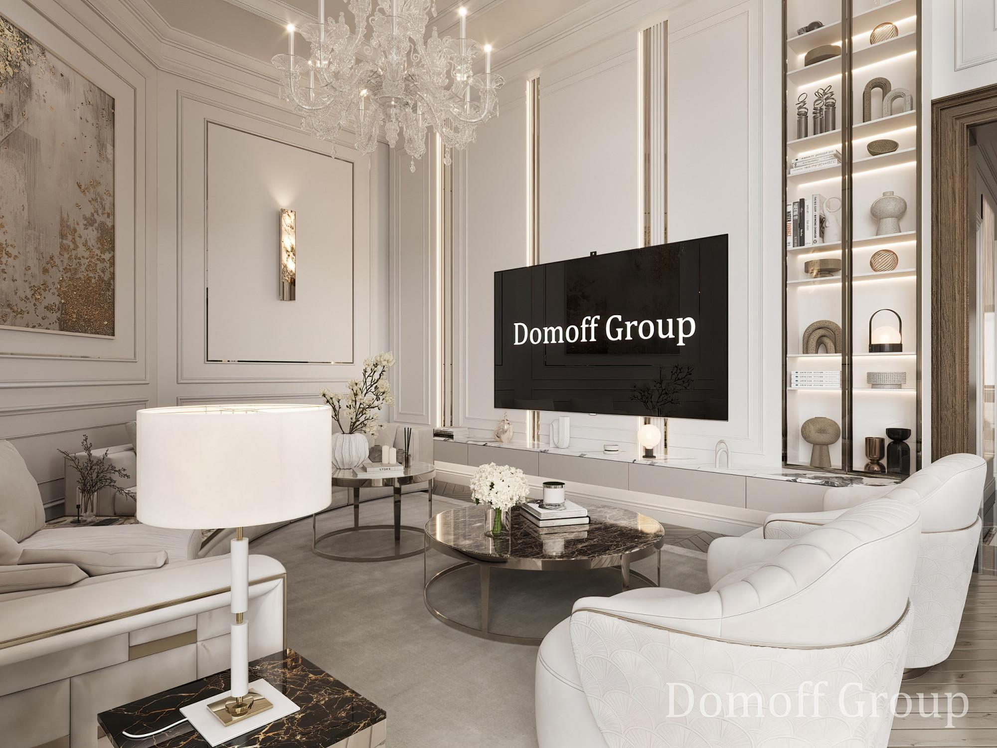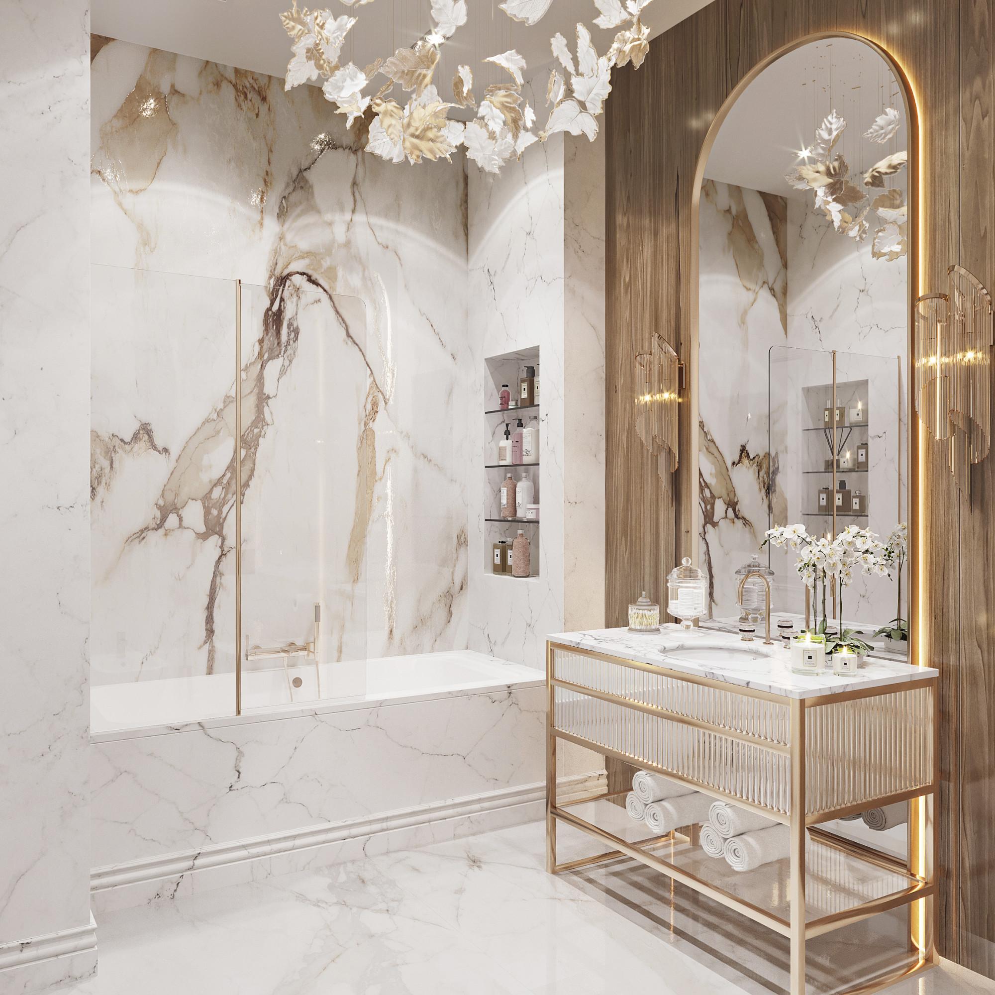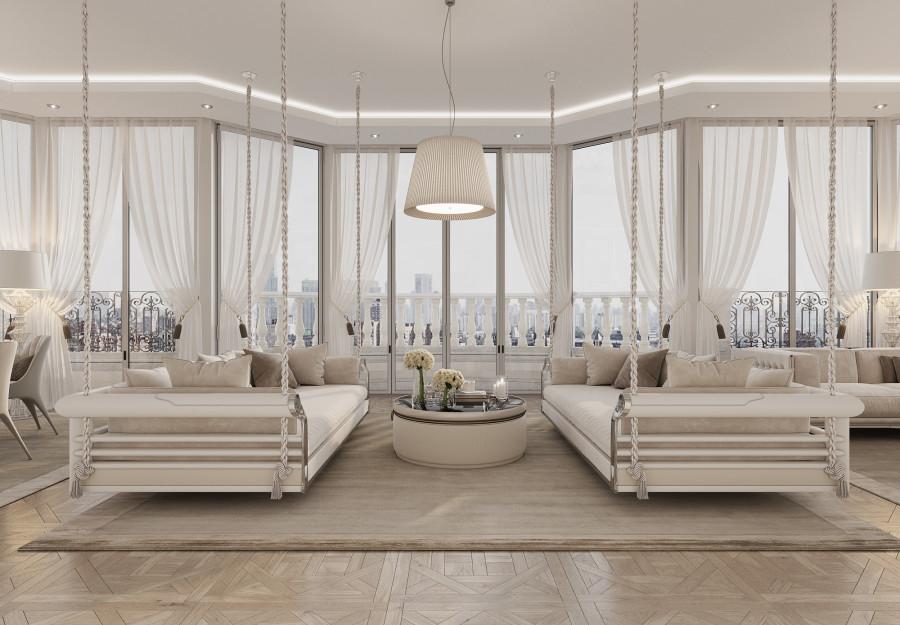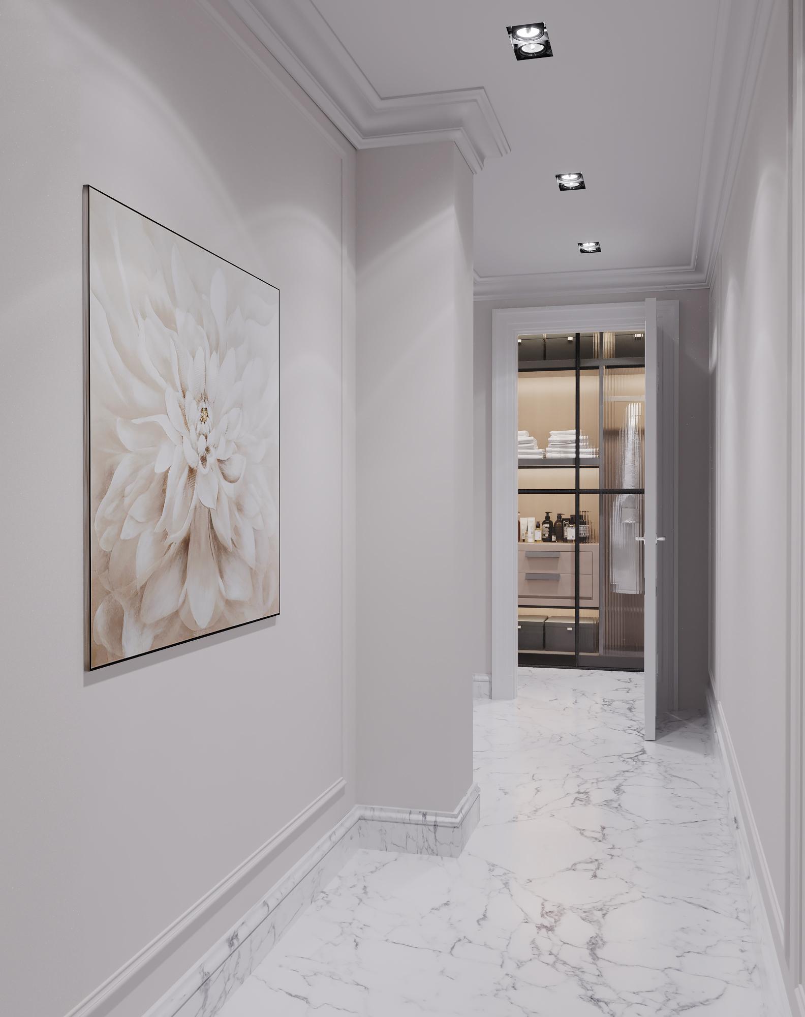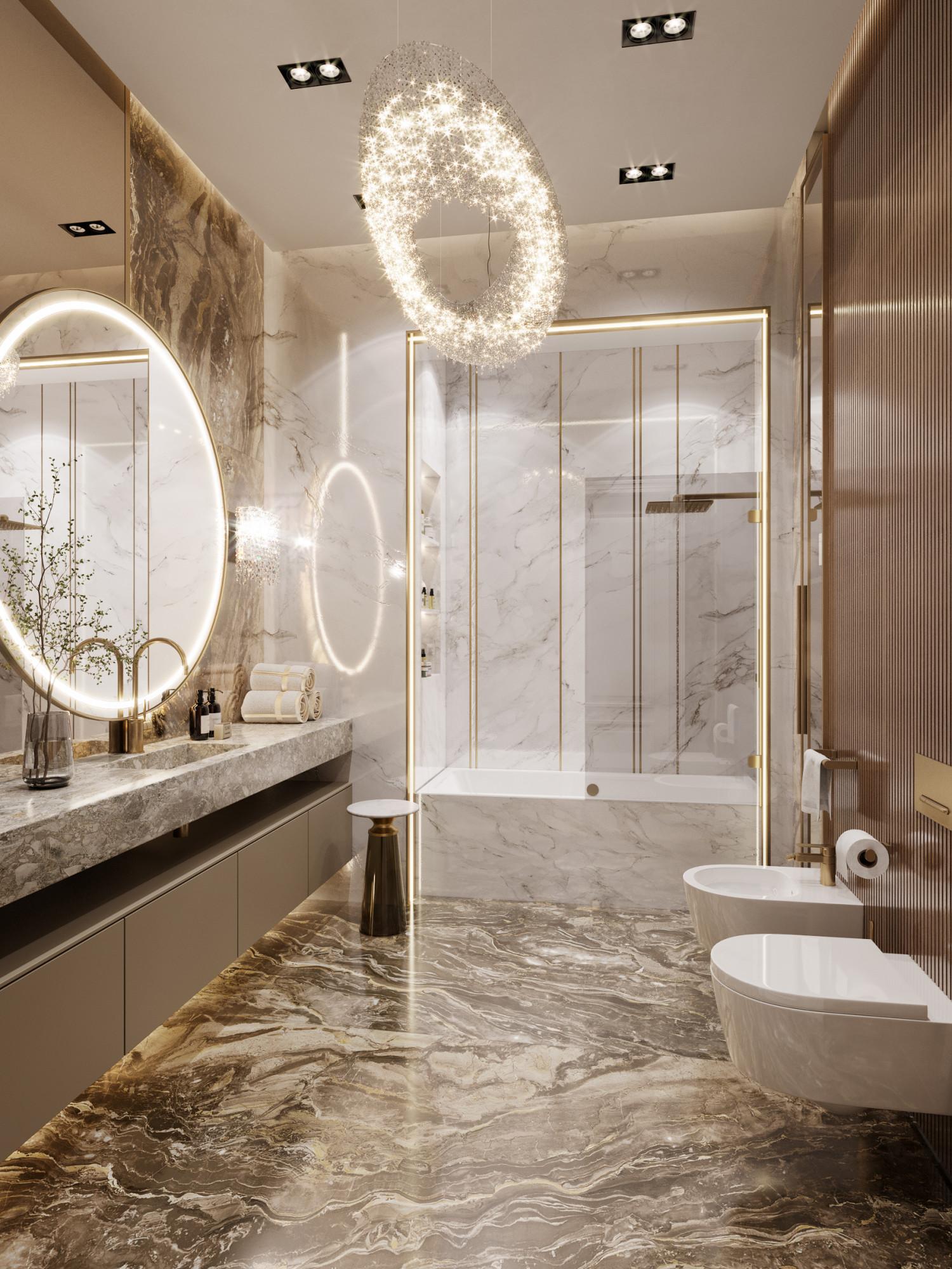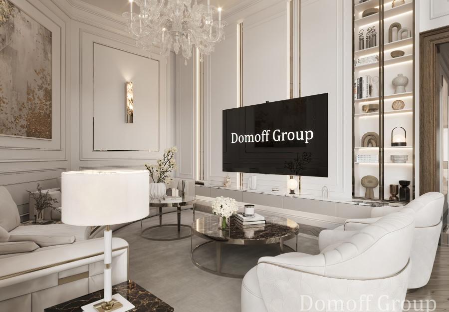 Интерьер выполнен в современном стиле с элементами минимализма и роскоши. Удачное сочетание нейтральных оттенков и металлических акцентов делает пространство элегантным и утонченным. Благородные бежевые, серые и коричневые тона, которые создают уютную атмосферу. Золотые элементы, такие как отделка мебели и декоративные детали, добавляют интерьеру тепла. Мягкая мебель бархатной обивкой и изысканные предметы освещения, подчеркивают стиль и статусность пространства.
