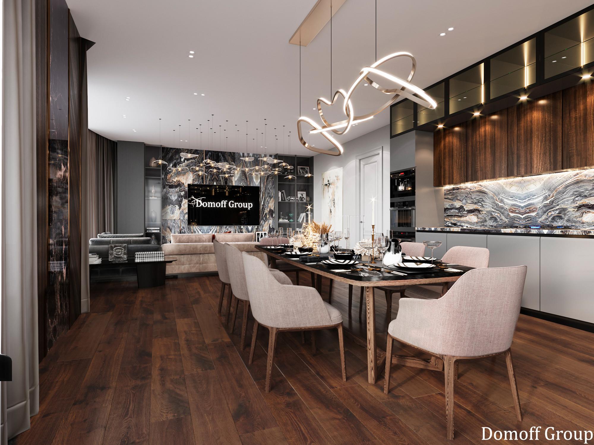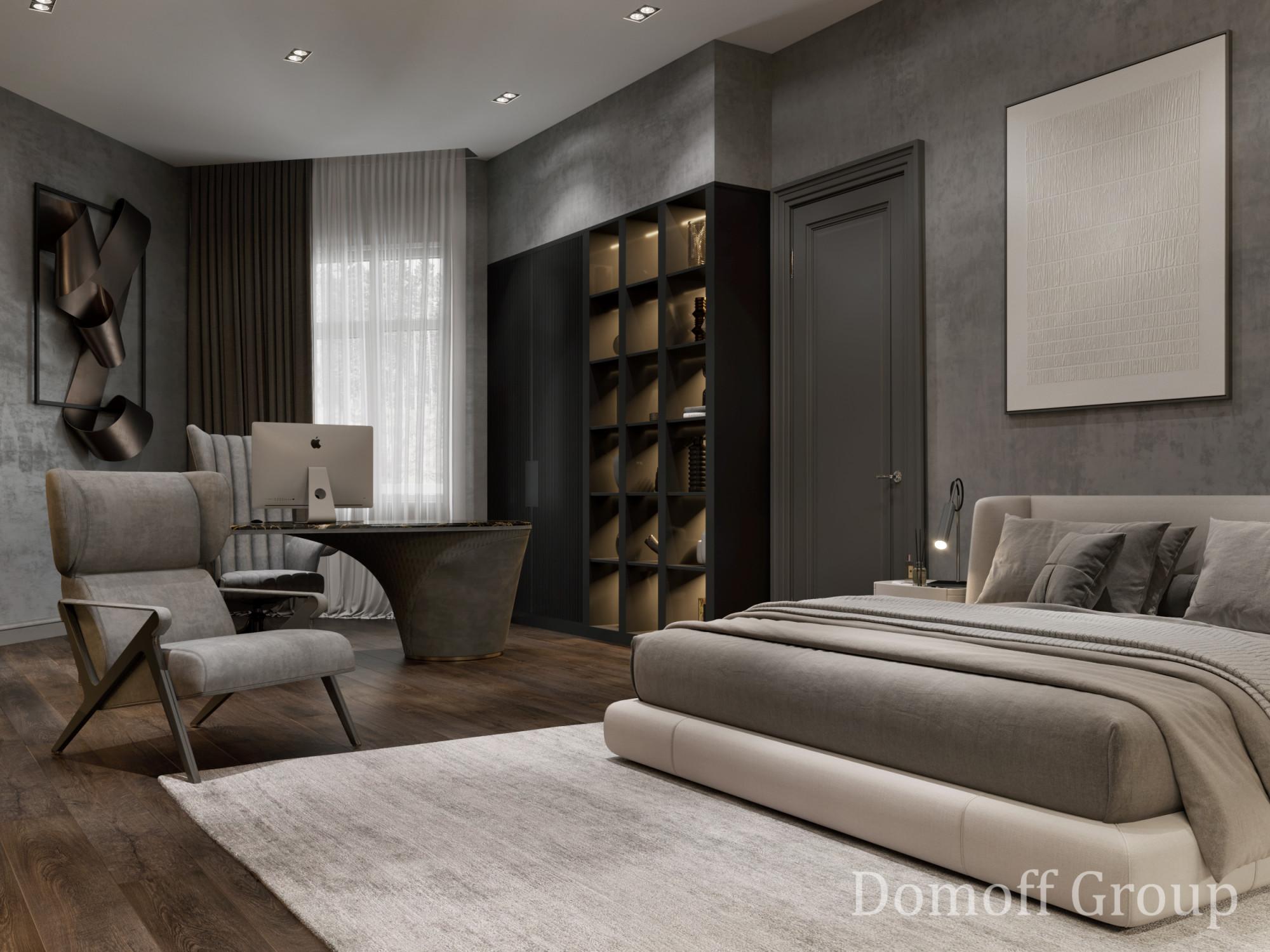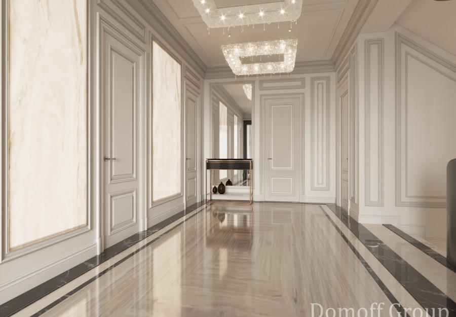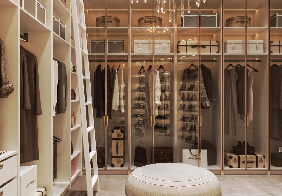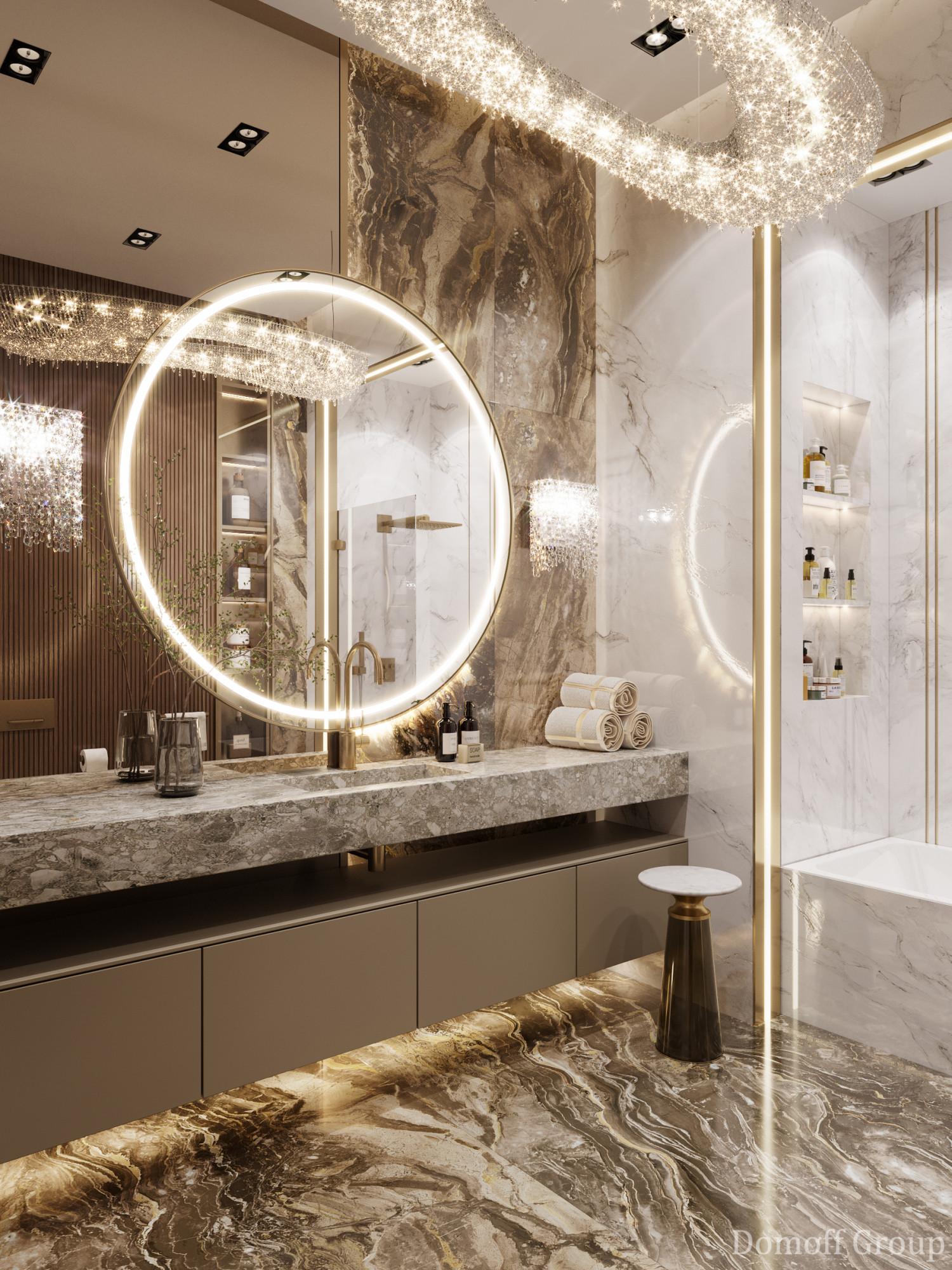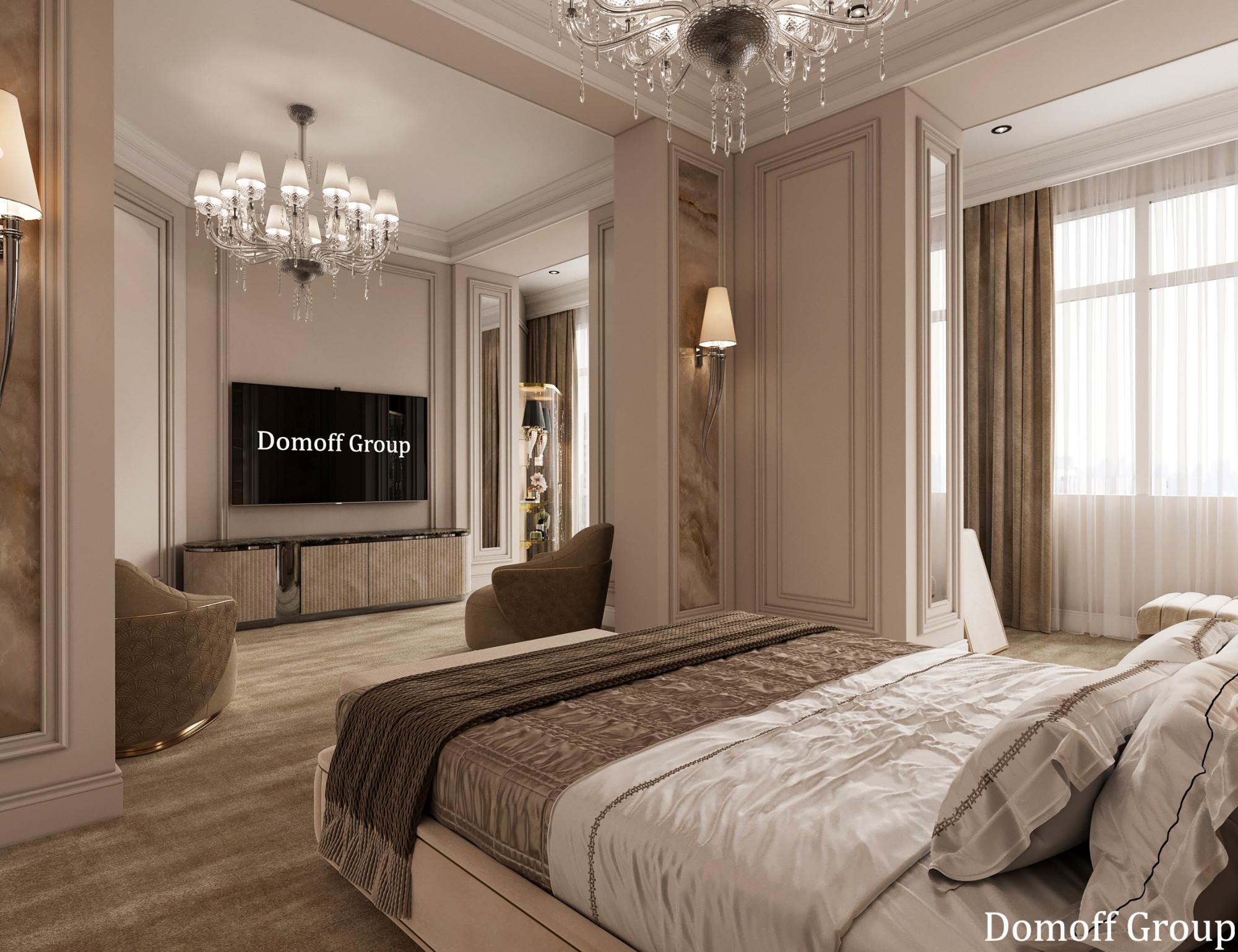 Интерьер выполнен в современном стиле с элементами минимализма и роскоши. Удачное сочетание нейтральных оттенков и металлических акцентов делает пространство элегантным и утонченным. Благородные бежевые, серые и коричневые тона, которые создают уютную атмосферу. Золотые элементы, такие как отделка мебели и декоративные детали, добавляют интерьеру тепла. Мягкая мебель бархатной обивкой и изысканные предметы освещения, подчеркивают стиль и статусность пространства.
