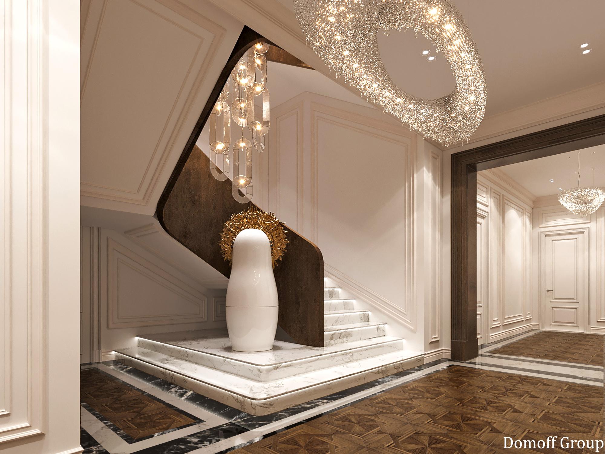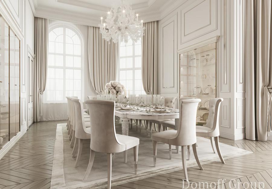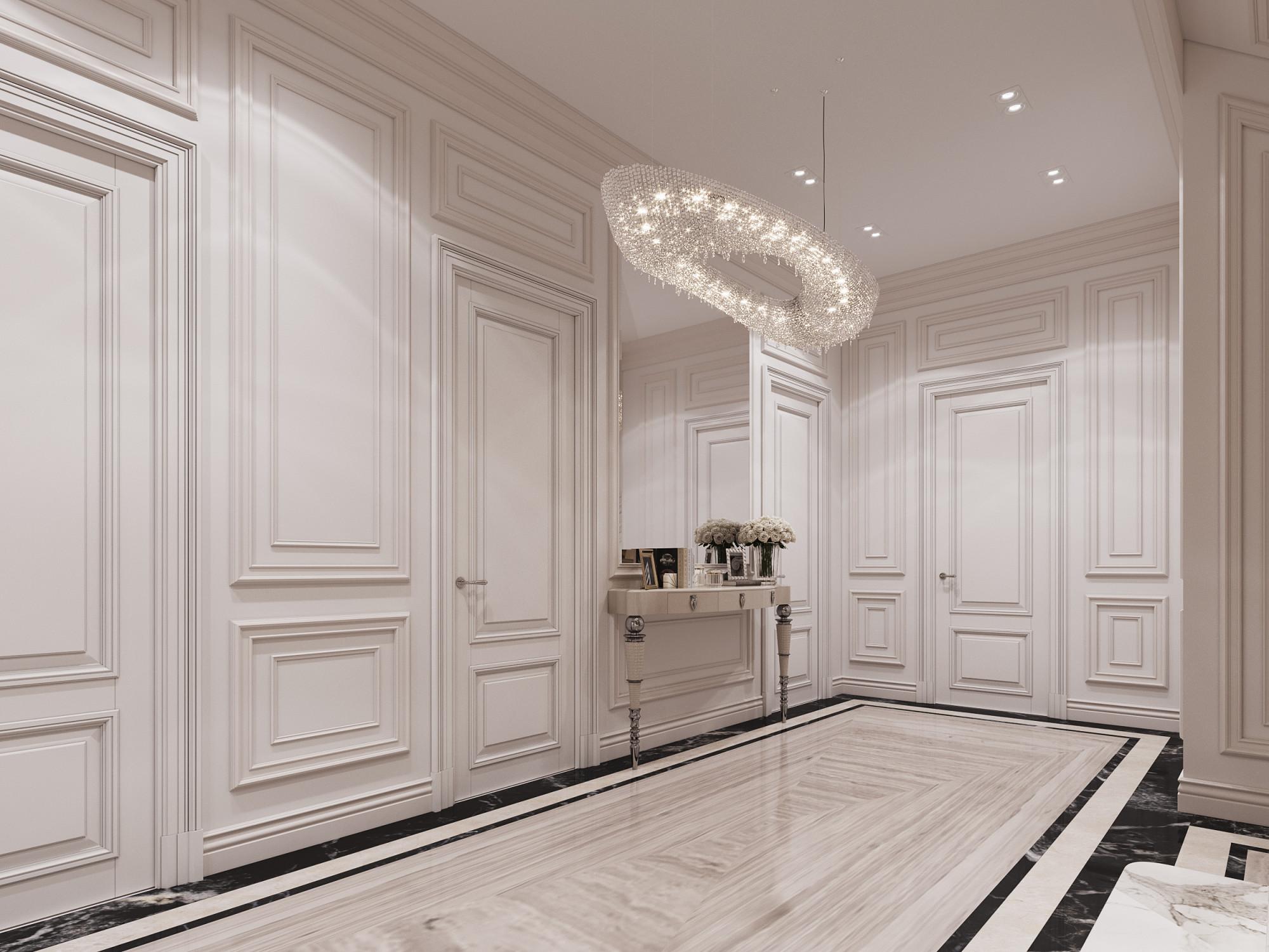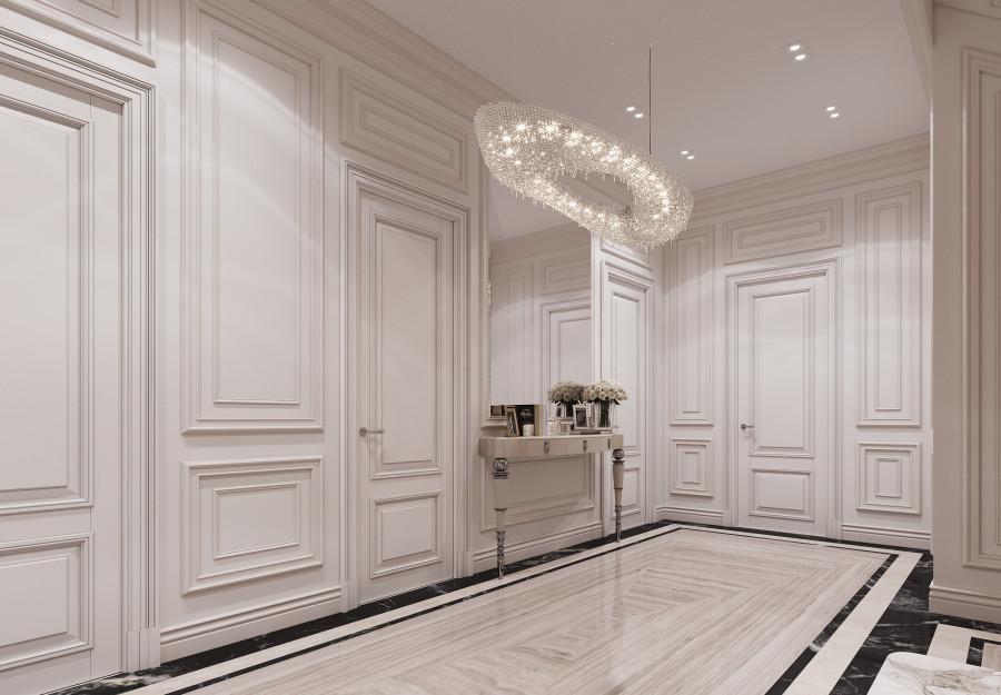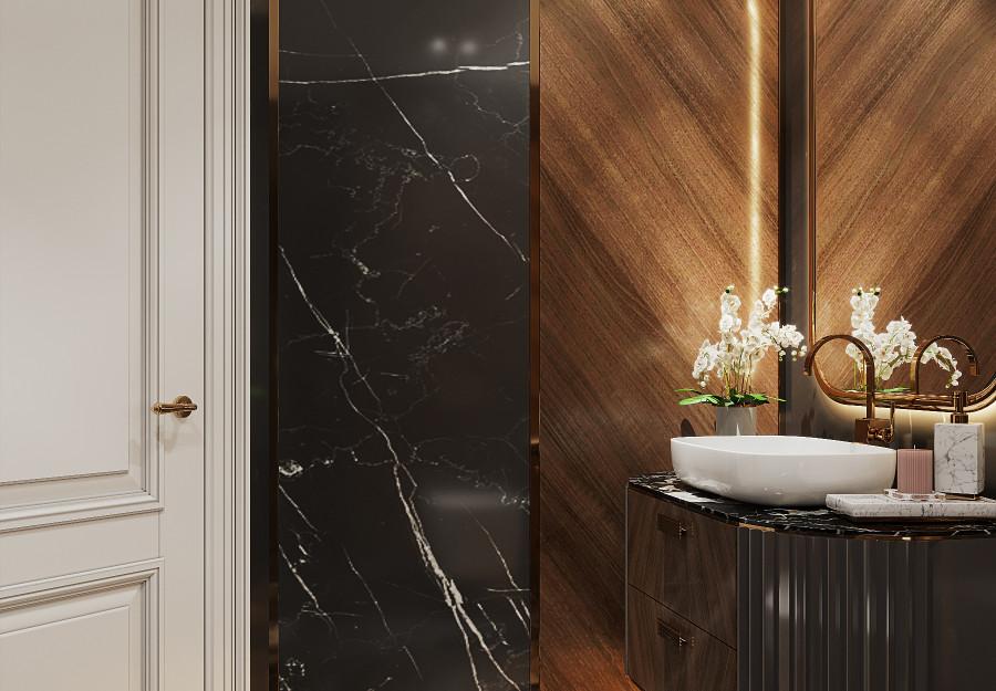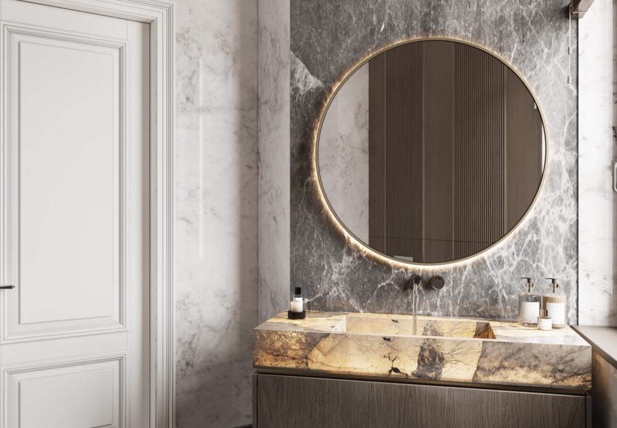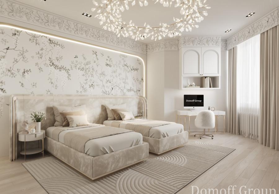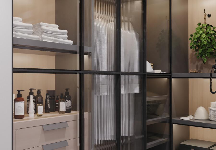 Интерьер выполнен в современном стиле с элементами минимализма и роскоши. Удачное сочетание нейтральных оттенков и металлических акцентов делает пространство элегантным и утонченным. Благородные бежевые, серые и коричневые тона, которые создают уютную атмосферу. Золотые элементы, такие как отделка мебели и декоративные детали, добавляют интерьеру тепла. Мягкая мебель бархатной обивкой и изысканные предметы освещения, подчеркивают стиль и статусность пространства.