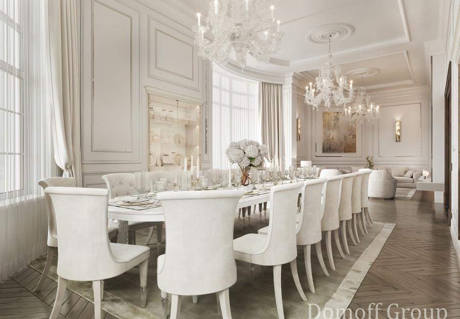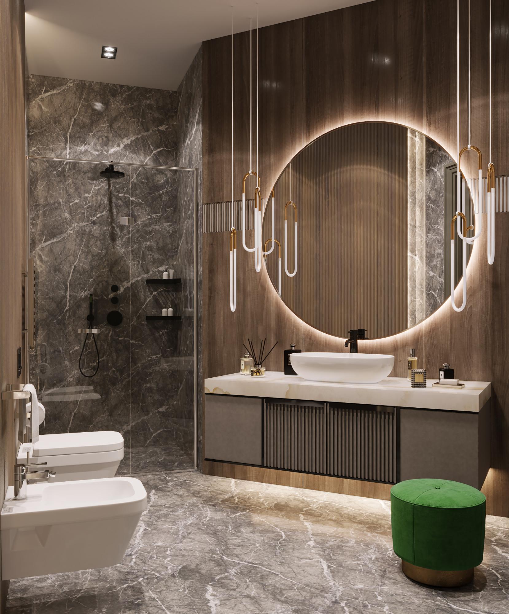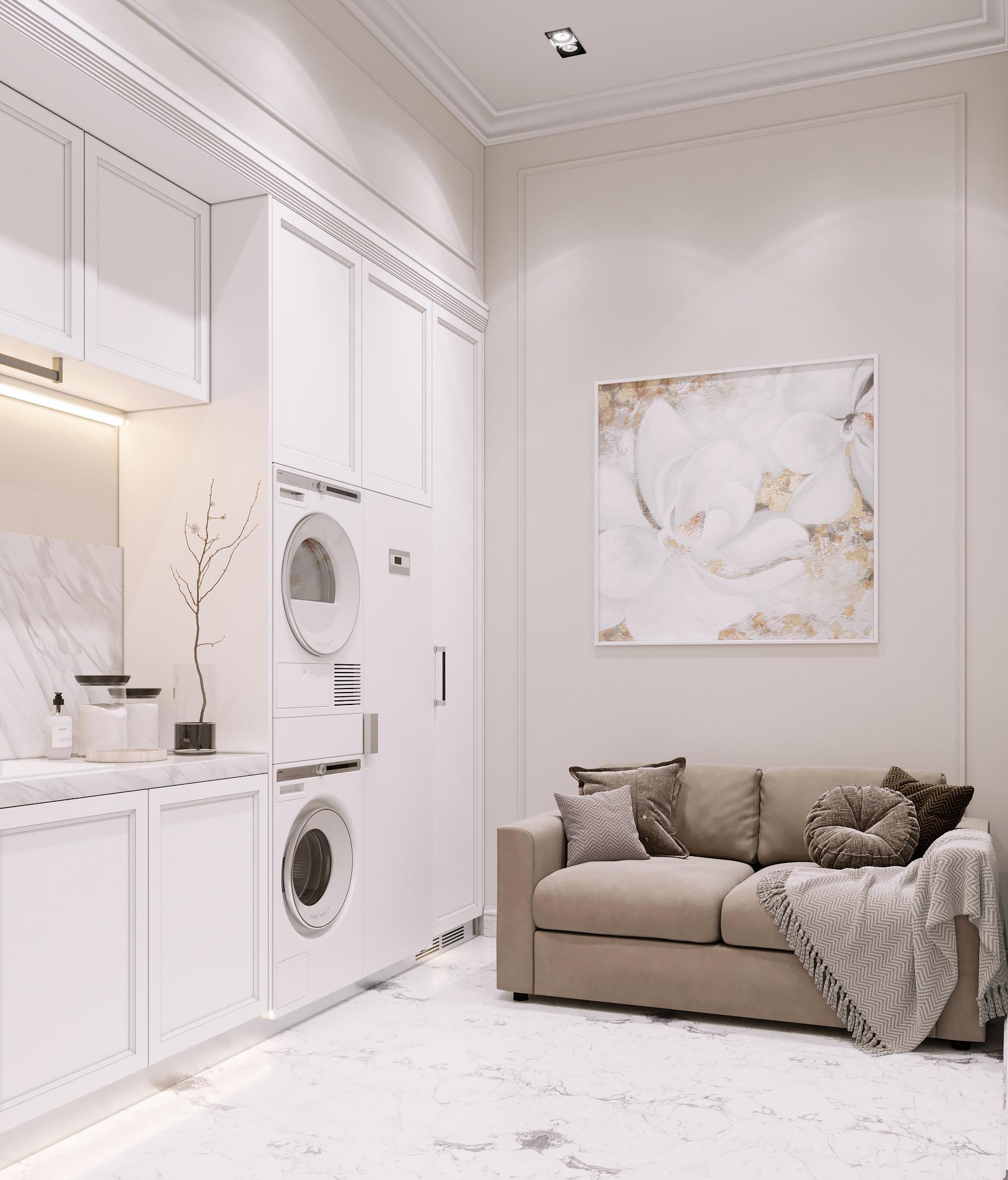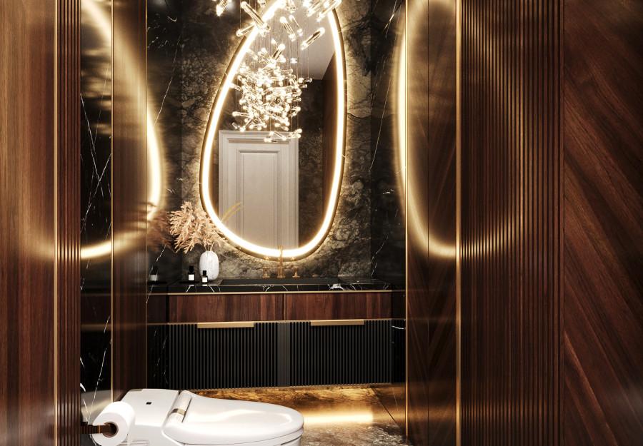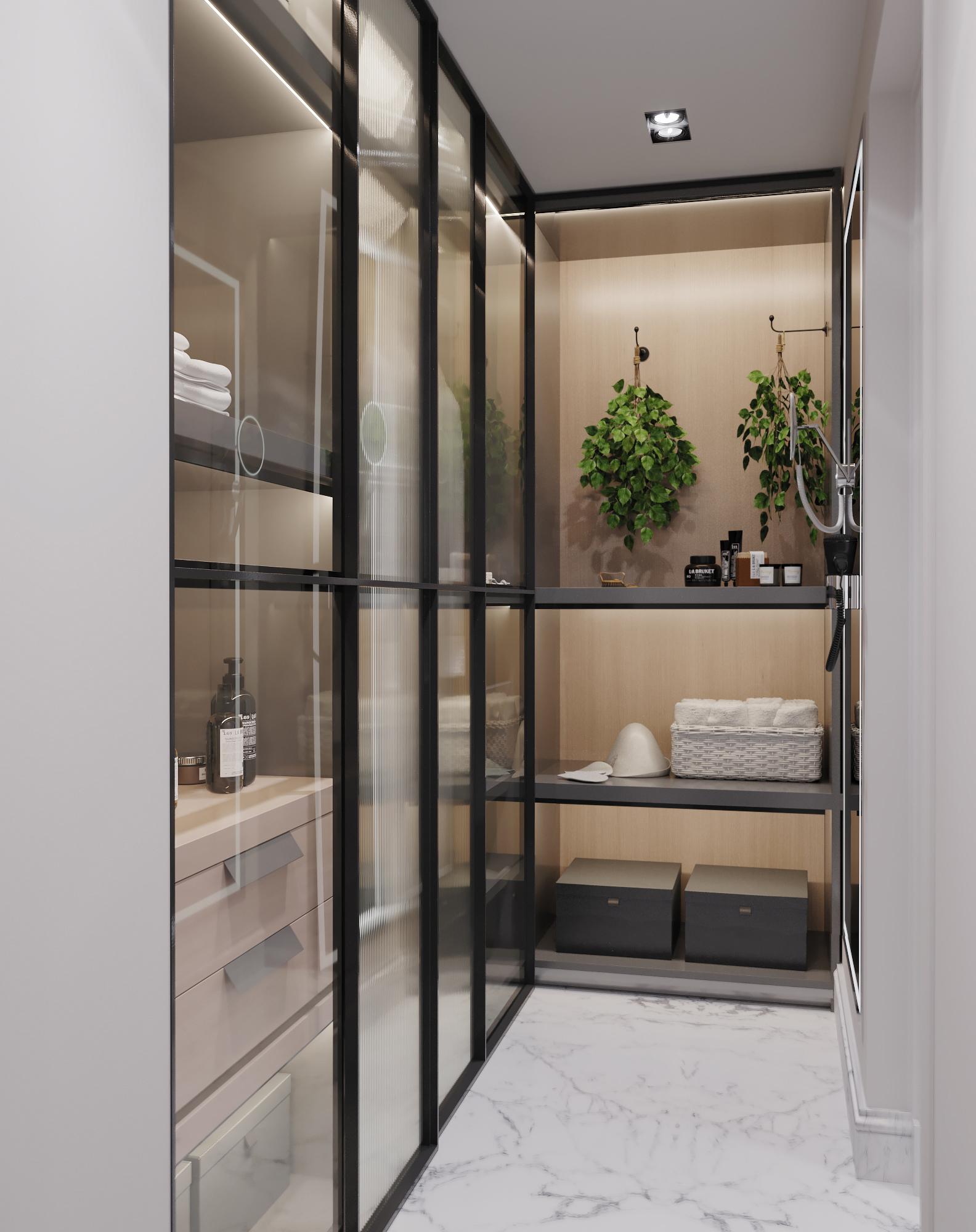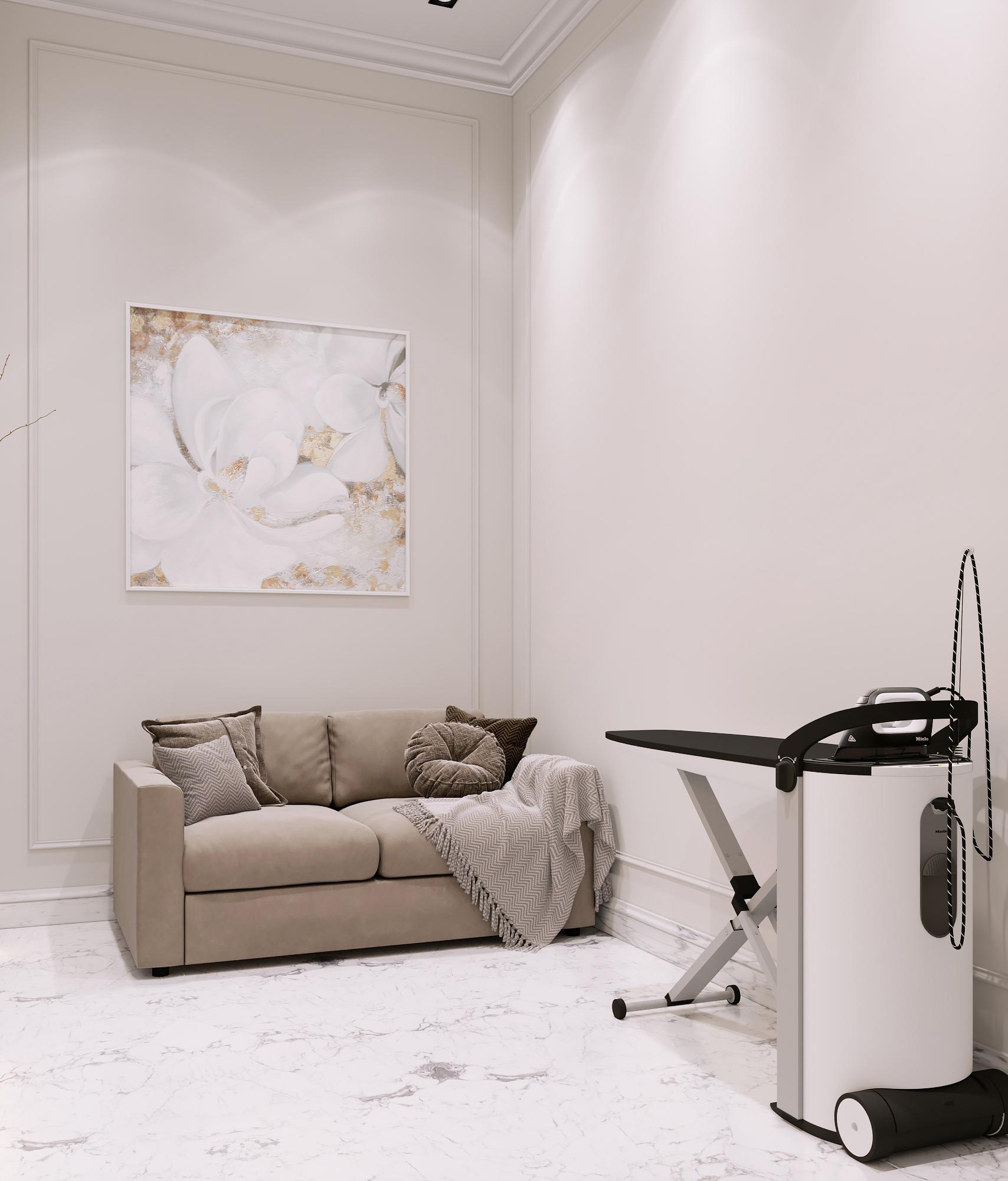 Интерьер выполнен в современном стиле с элементами минимализма и роскоши. Удачное сочетание нейтральных оттенков и металлических акцентов делает пространство элегантным и утонченным. Благородные бежевые, серые и коричневые тона, которые создают уютную атмосферу. Золотые элементы, такие как отделка мебели и декоративные детали, добавляют интерьеру тепла. Мягкая мебель бархатной обивкой и изысканные предметы освещения, подчеркивают стиль и статусность пространства.