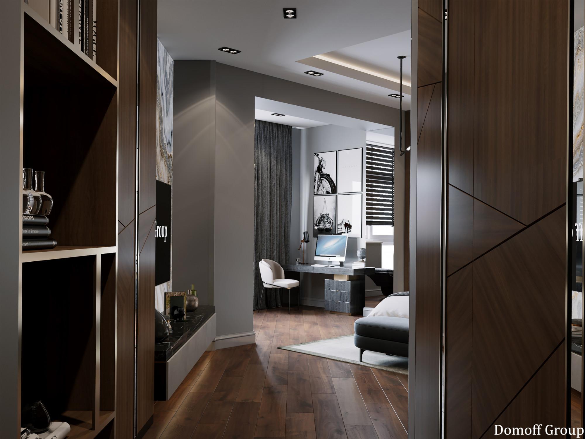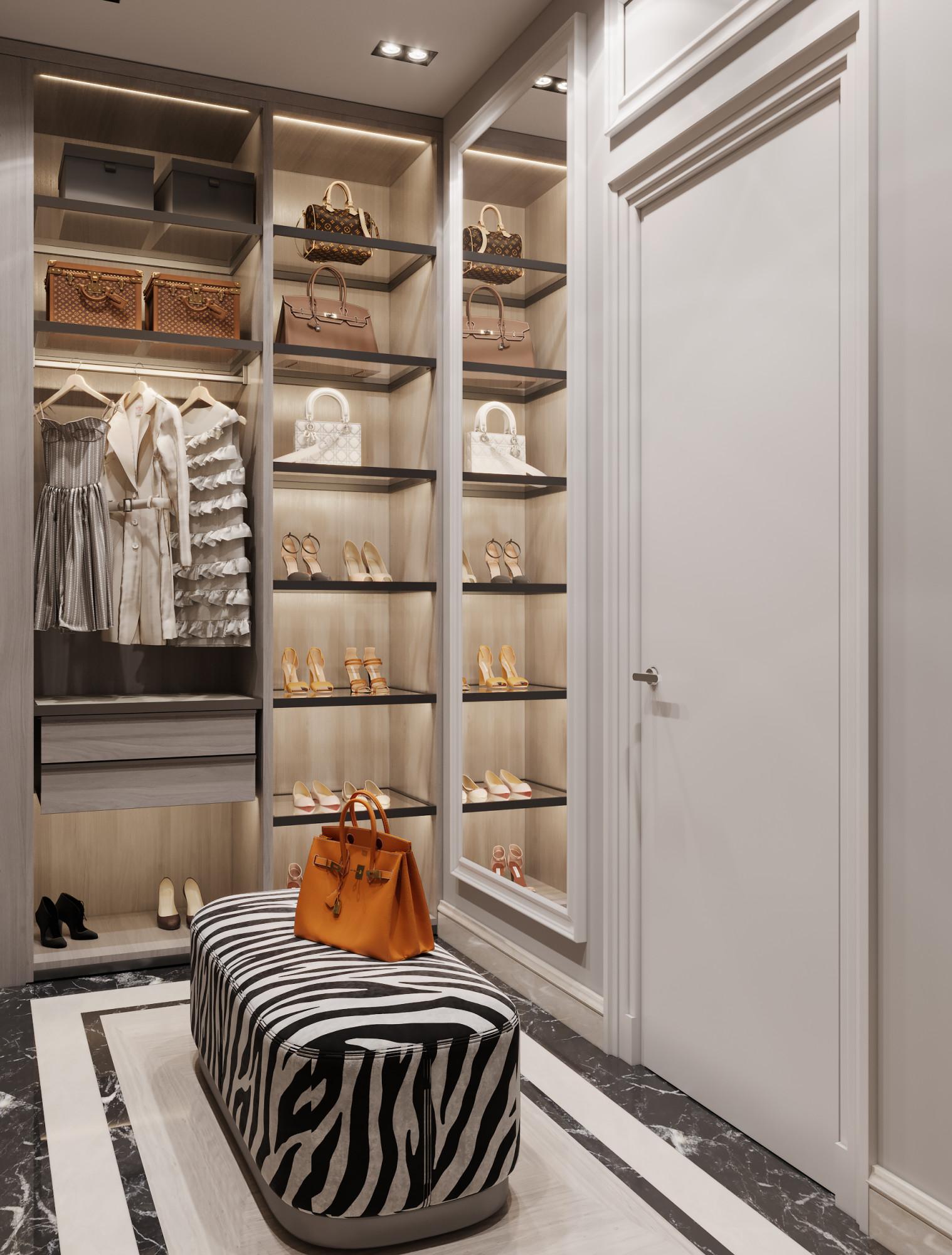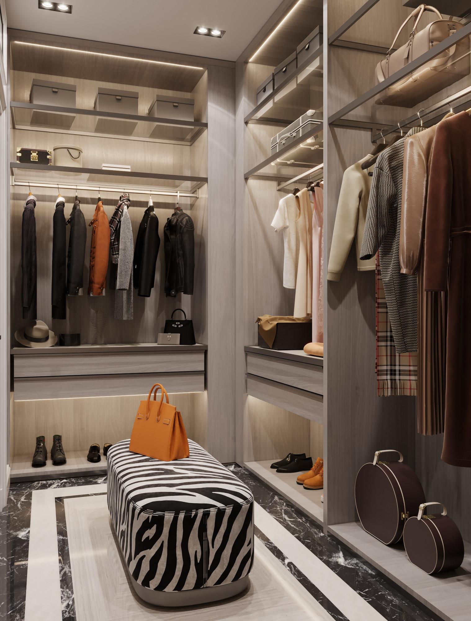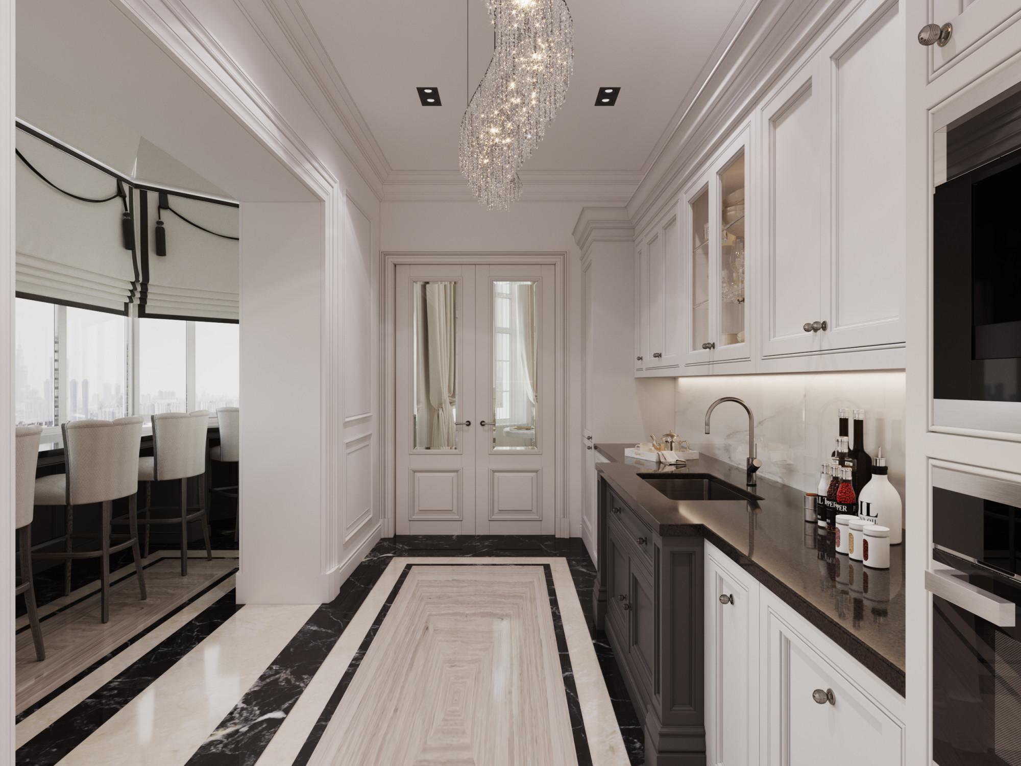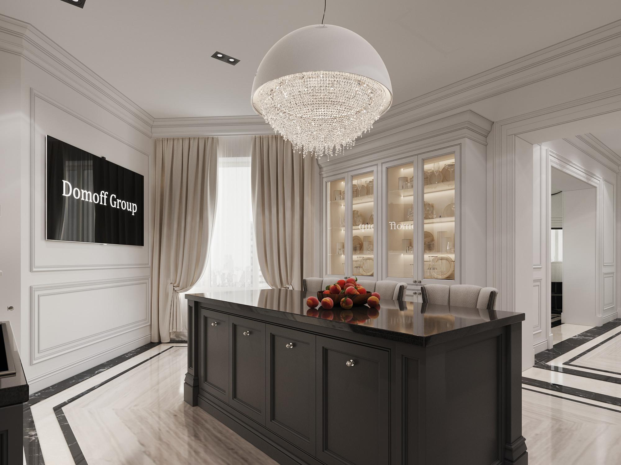 Интерьер выполнен в современном стиле с элементами минимализма и роскоши. Удачное сочетание нейтральных оттенков и металлических акцентов делает пространство элегантным и утонченным. Благородные бежевые, серые и коричневые тона, которые создают уютную атмосферу. Золотые элементы, такие как отделка мебели и декоративные детали, добавляют интерьеру тепла. Мягкая мебель бархатной обивкой и изысканные предметы освещения, подчеркивают стиль и статусность пространства.