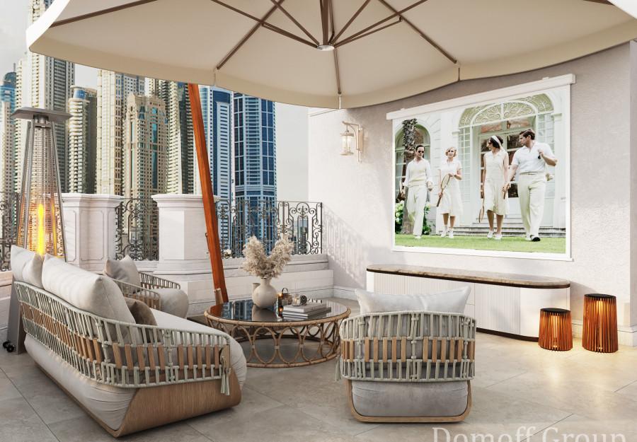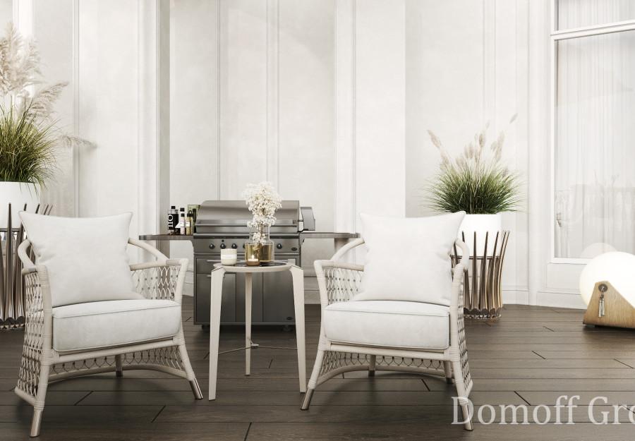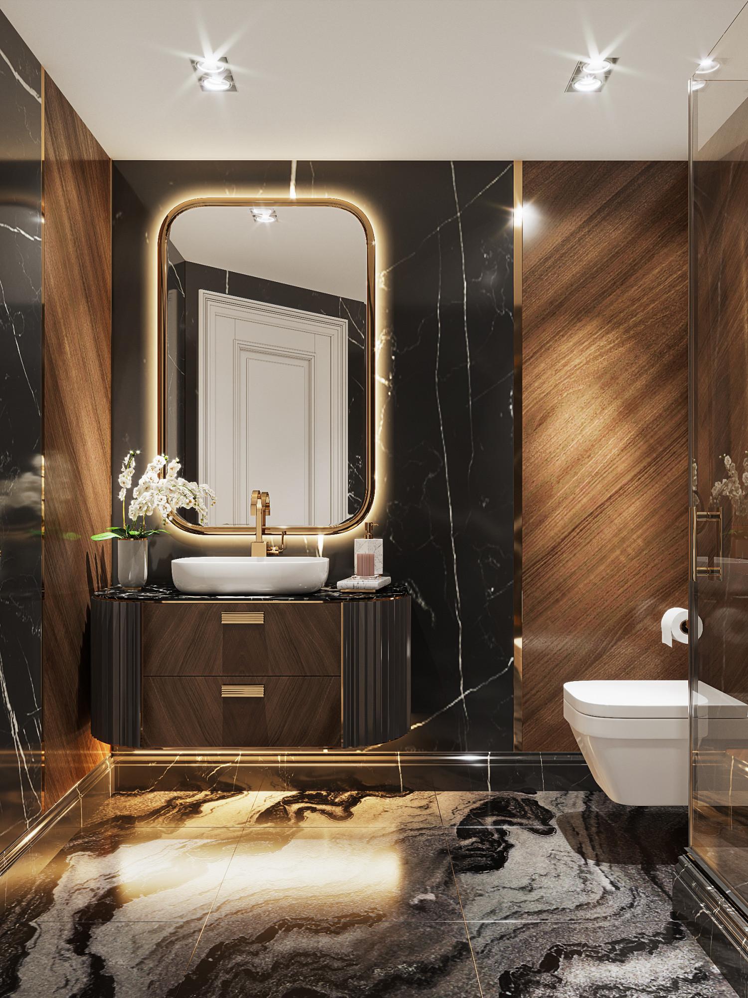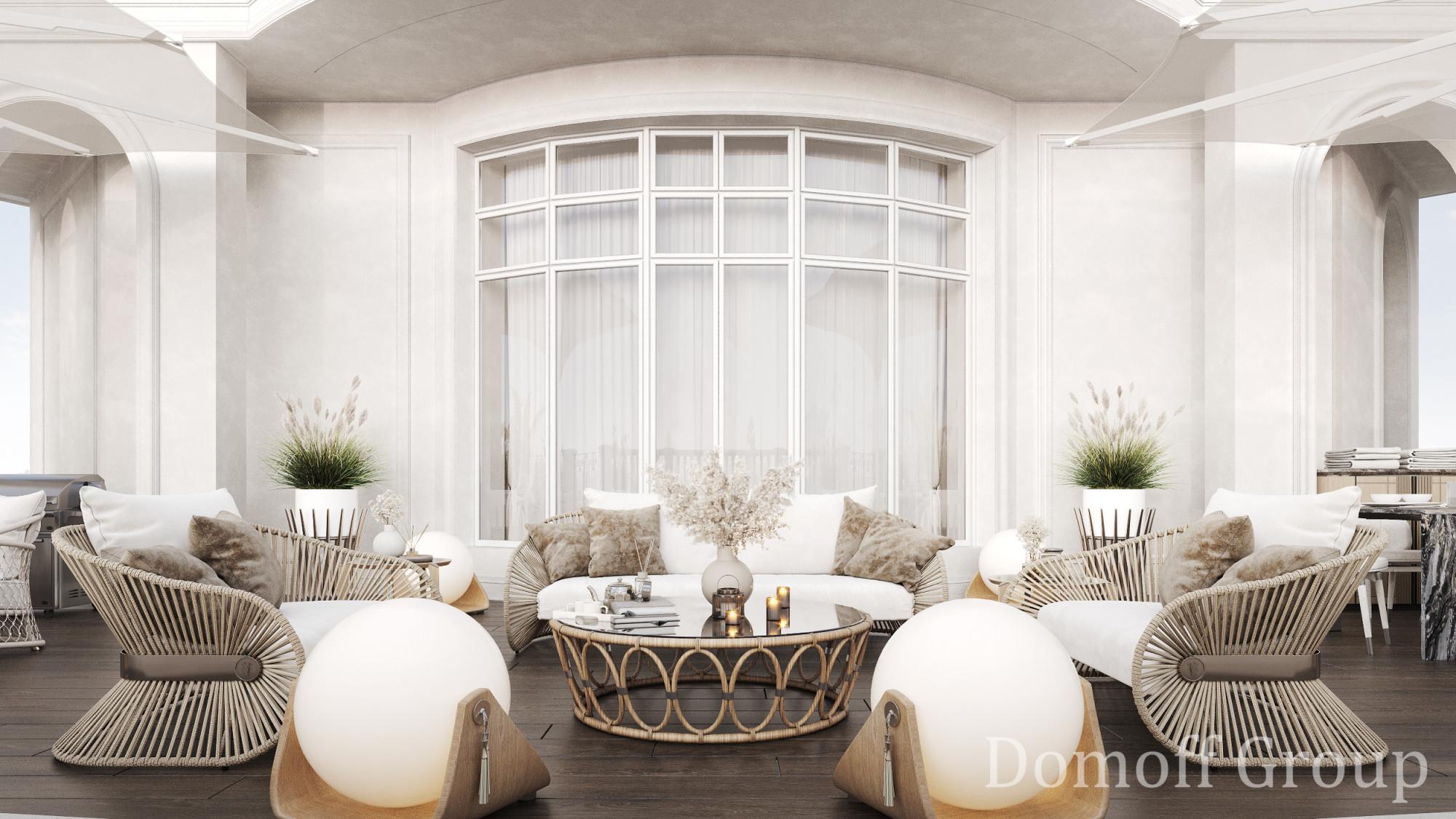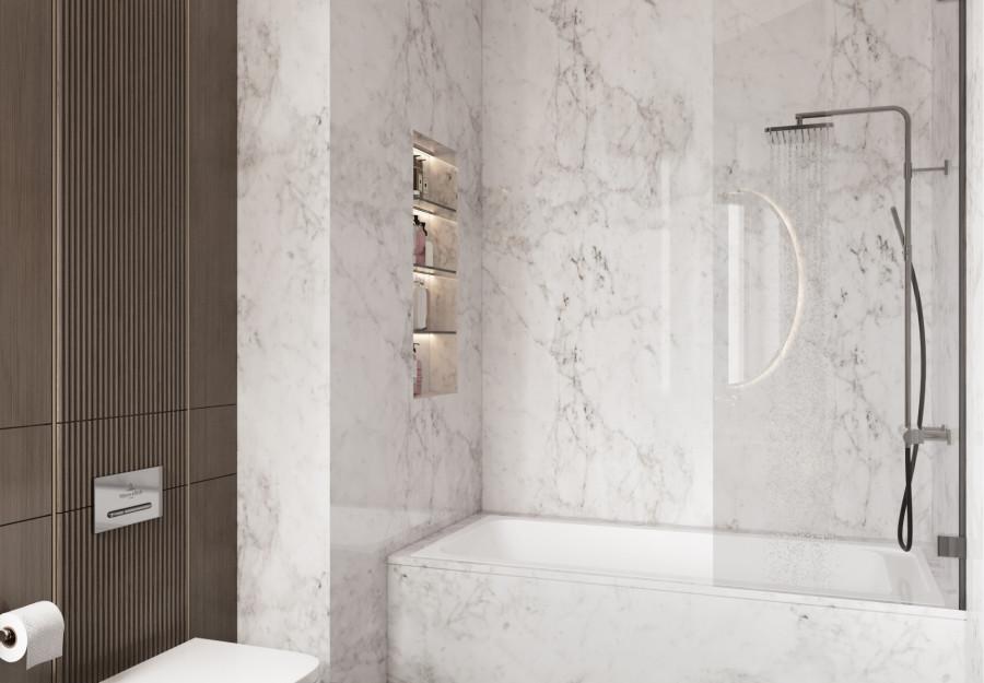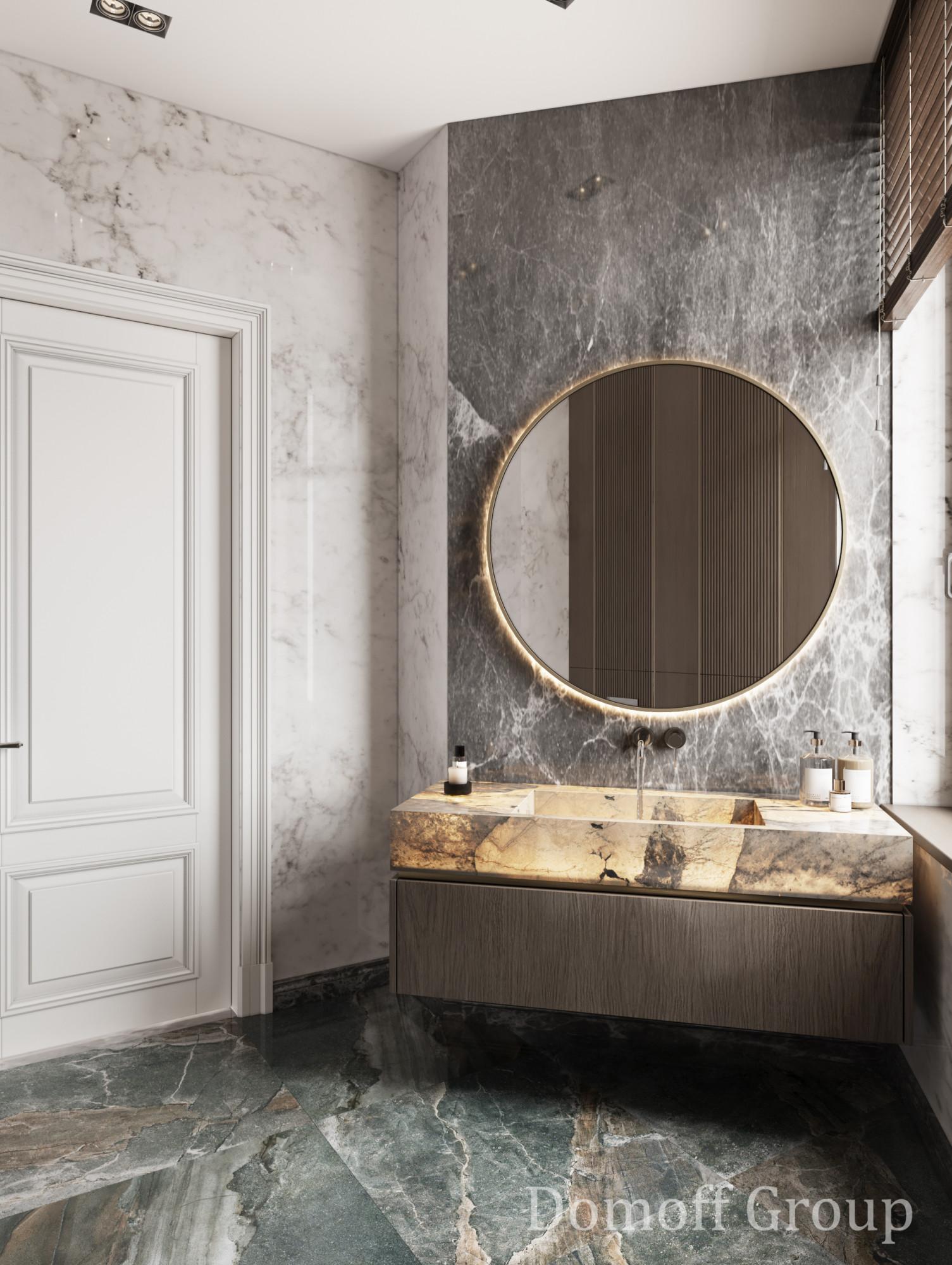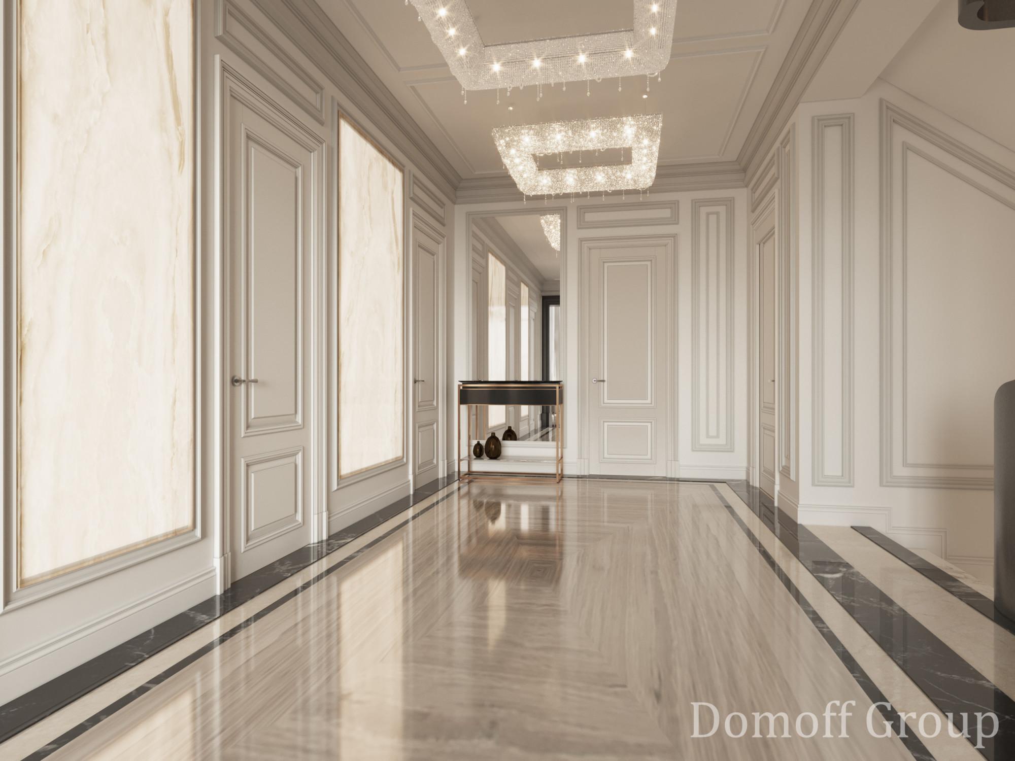 Интерьер выполнен в современном стиле с элементами минимализма и роскоши. Удачное сочетание нейтральных оттенков и металлических акцентов делает пространство элегантным и утонченным. Благородные бежевые, серые и коричневые тона, которые создают уютную атмосферу. Золотые элементы, такие как отделка мебели и декоративные детали, добавляют интерьеру тепла. Мягкая мебель бархатной обивкой и изысканные предметы освещения, подчеркивают стиль и статусность пространства.